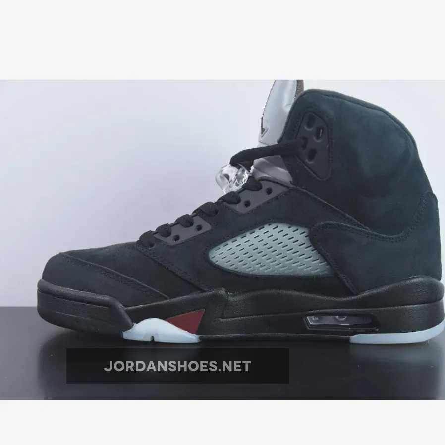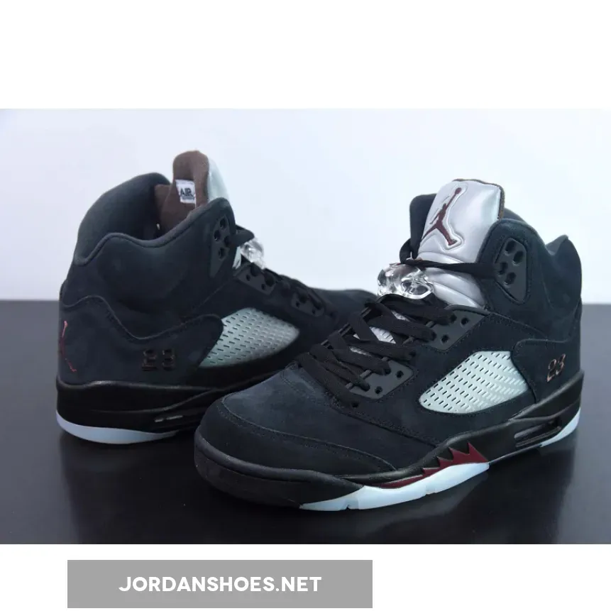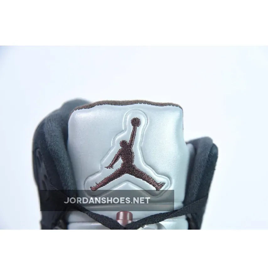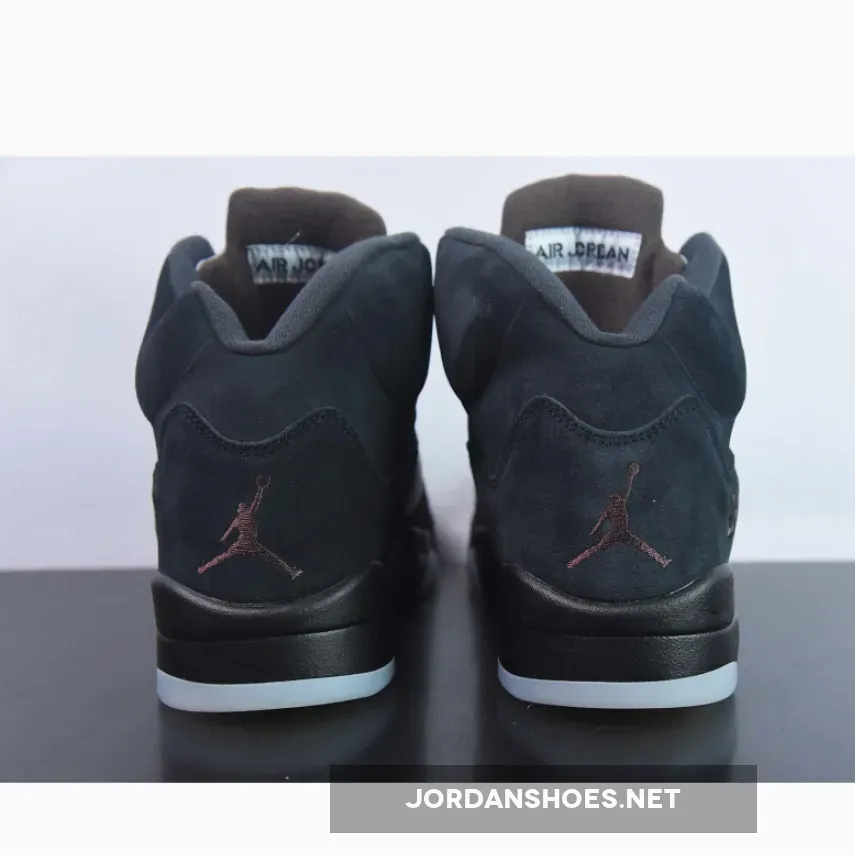 The pair reveal a suede tooling for the majority of the upper, accented with the brand’s signature burgundy. The A Ma Maniére x Air Jordan 5 Black comes with Jumpman branding on the right tongue and A Ma Maniére on the left tongue.
