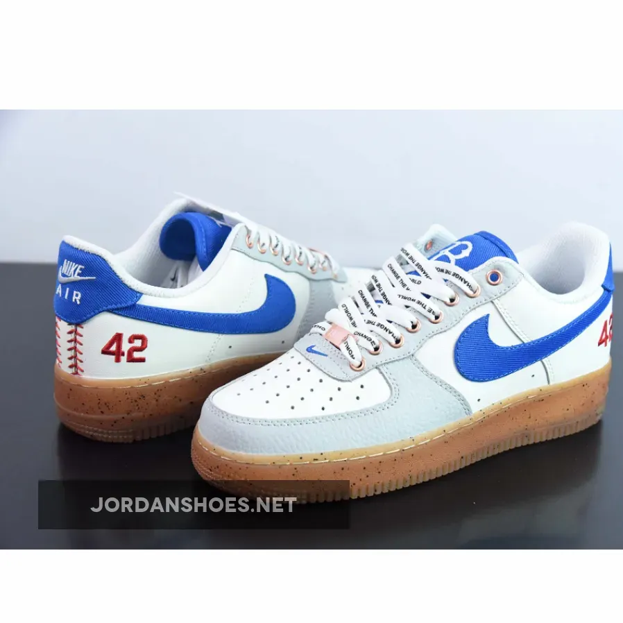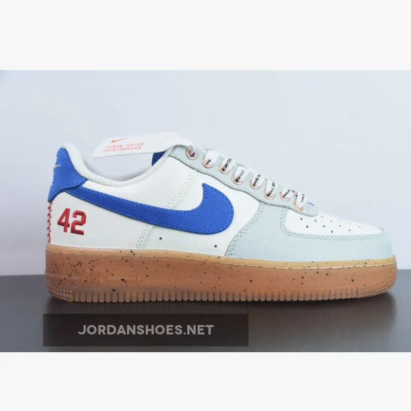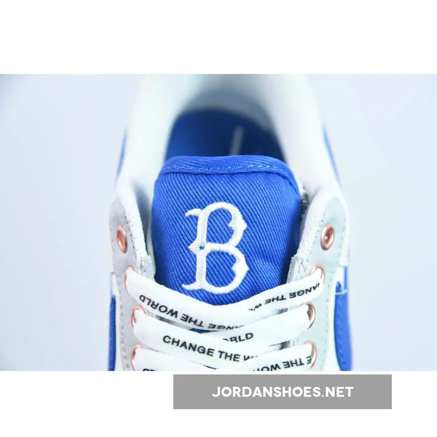 The Nike Air Force 1 Low “Jackie Robinson” gets covered in the team colors of the Brooklyn Dodgers which include white, grey and royal blue in smooth and tumbled leather throughout.