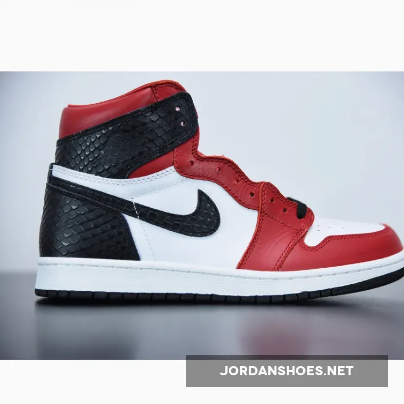 A first look at the upcoming Air Jordan 1 High “Satin Snake” has revealed that it in an almost Reverse Black toe blocking, with red satin hitting the tongues and liners, along with red tumbled leather throats, eyestays and toe overlays, and black snakeskin on the collars, heels and Swoosh overlays. It’s completed with white leather mid panels, a white midsole, and black rubber outsole. This is the latest in a long-run of premium pairs for the ladies, who have recently seen satin options in both the Black Toe and Shattered Backboard Air Jordan 1 blocking, as well as a reptilian Air Jordan 12.