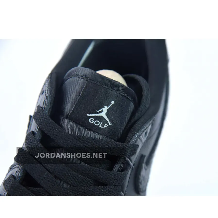 More black detailing is featured on the tongue, lacing system, and sockliner while dark grey Jumpman logos and GOLF branding are embroidered onto the tongues. The rubber midsole is seen in white with a Black outsole featuring spikeless teeth for stability and traction.