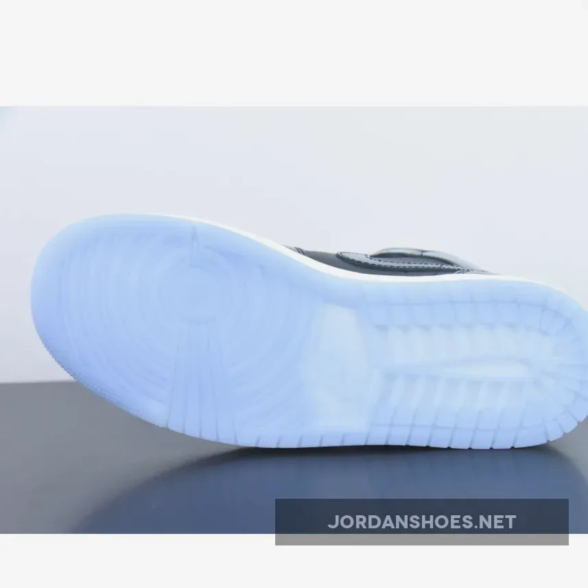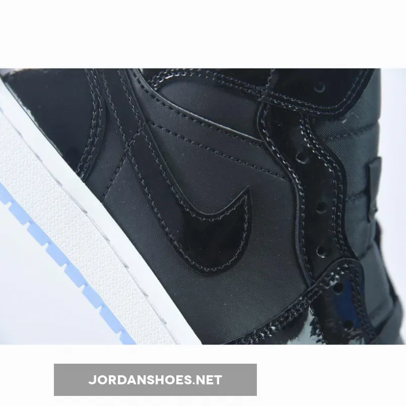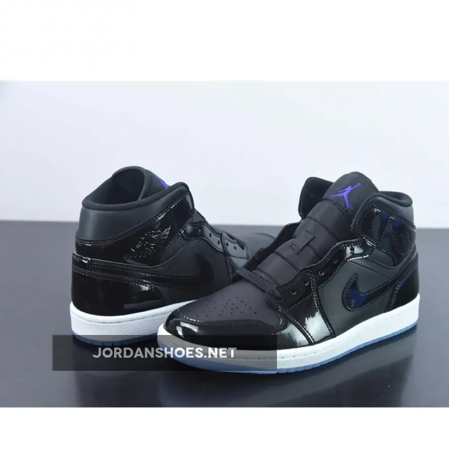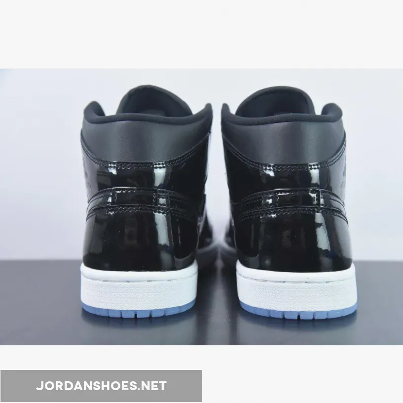 This sneaker looks as though it’s from the depths of a black hole as the upper is covered entirely is stark black. The toebox and mid-panels use flat black leather, while the overlays opt for high-shine patent. Patent leather has always split opinions due to its glossy finish, but you can’t deny it looks like a natural fit on the Air Jordan 1 Mid,even complementing the embossed Air Jordan Wings and heel counter. Tooling on the sole unit continues the Space Jam theme with its white midsole and icy bottom finish, rounding off the film-inspired ensemble.