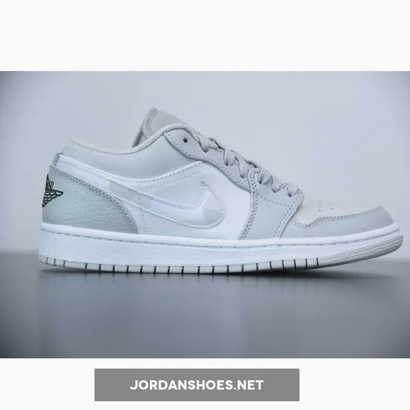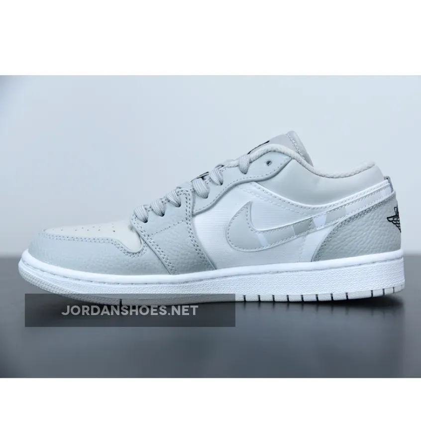 the pair features a white base overlaid with light grey tumbled leather panels. Midfoot underlays deviate from the model’s standard leather build in favor of a canvas-like material. Jordan Brand-specific branding interrupts the light palette with its black composition, while profile logos boast a greyscale camo pattern. Underfoot, sole units don’t partake in the experiments, opting in for a clean white midsole/grey outsole combination.