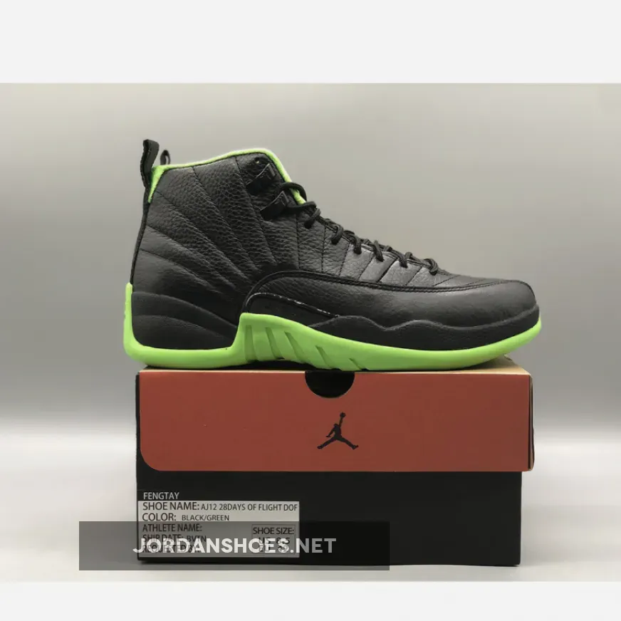 jordan 12 black and green #black neon jordans #jordan 12 28 days of flight
