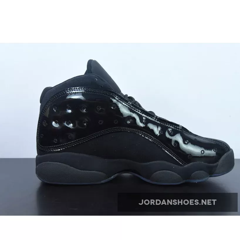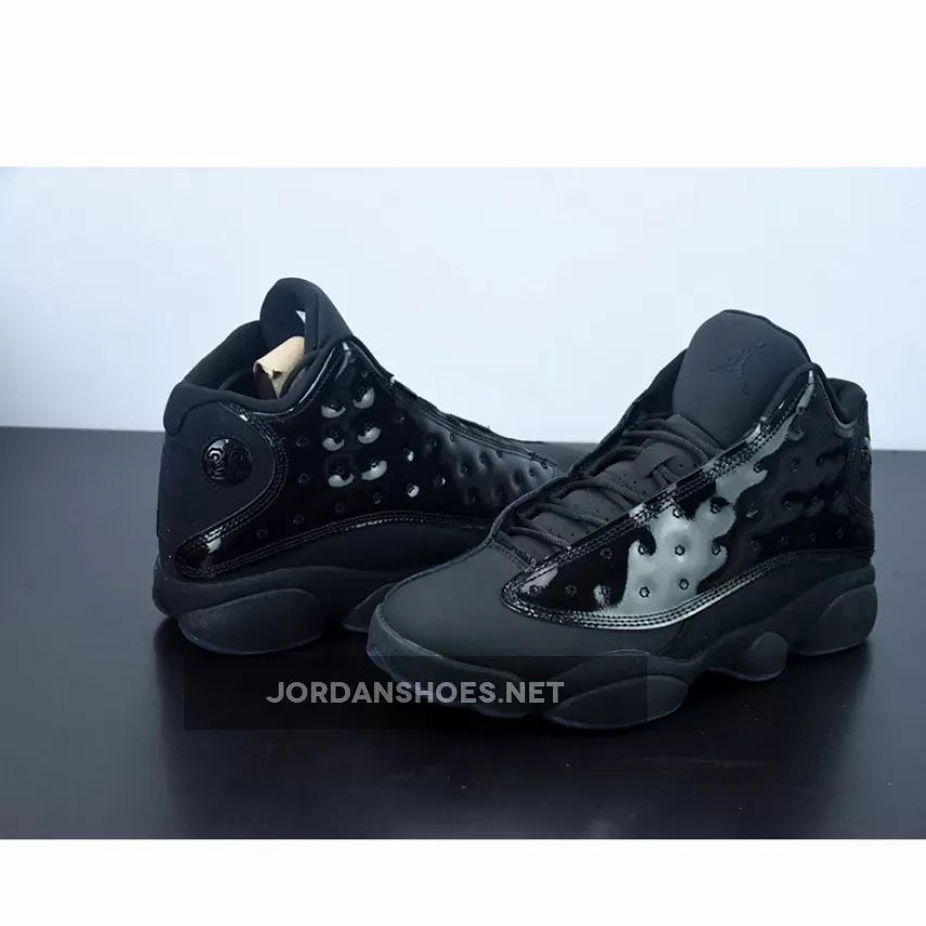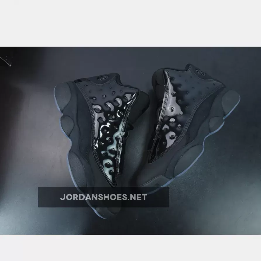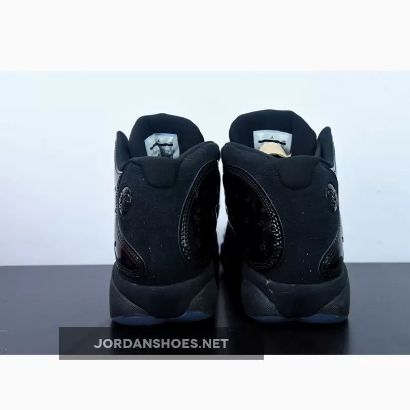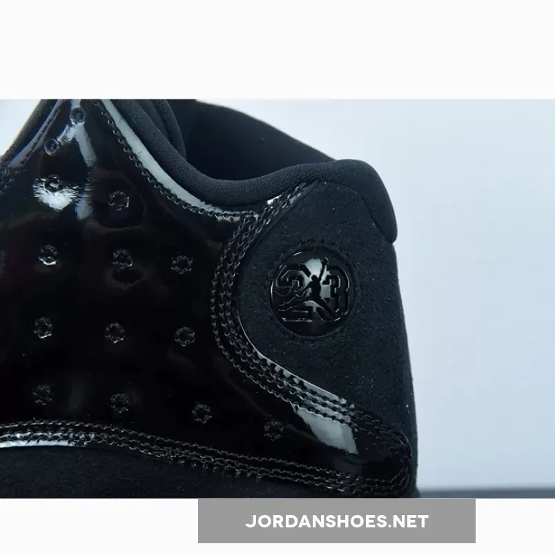 Much like the Air Jordan 11, this Air Jordan 13 will come dressed in an all-Black color scheme. Very similar to the “Black Cat” Air Jordan 13 from 2017, this release replaces the mesh panels for patent leather will the remainder of the shoe receives suede treatment.