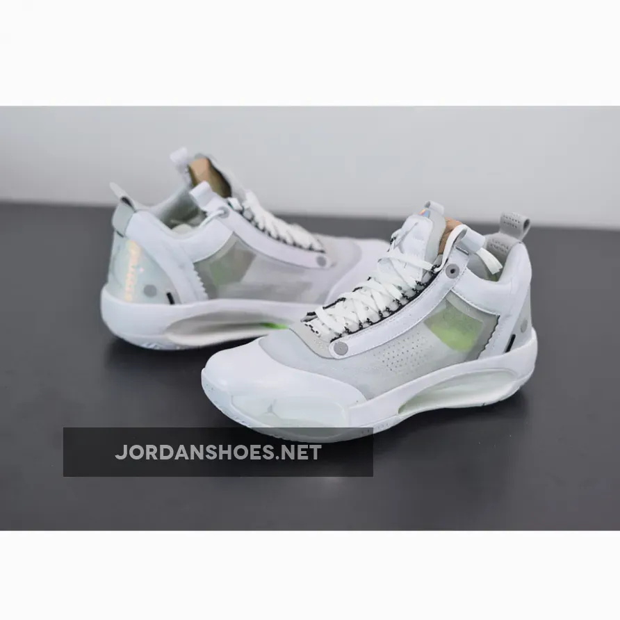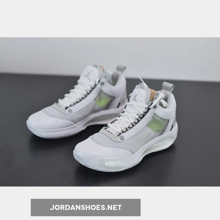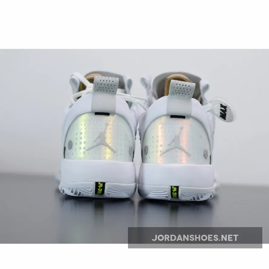 And finally, it looks as though the month of April is going to be the first time the model sees an official launch. After recently springing up in Guo Ailun PE colors, the hardwood-ready silhouette is transitioning over to a much cleaner complexion by doing its best “Pure Money” impression. Base constructions are mostly given a clean white execution, and come seated next to tiny silver accents fastened to the tongue Jumpman logos and circular throat badges. Additionally, if you look closely through its opaque midfoot paneling, you can see a tiny hint of volt accents peaking through. Sole pieces including its traditional Eclipse plate and treading continue its tonal nature.