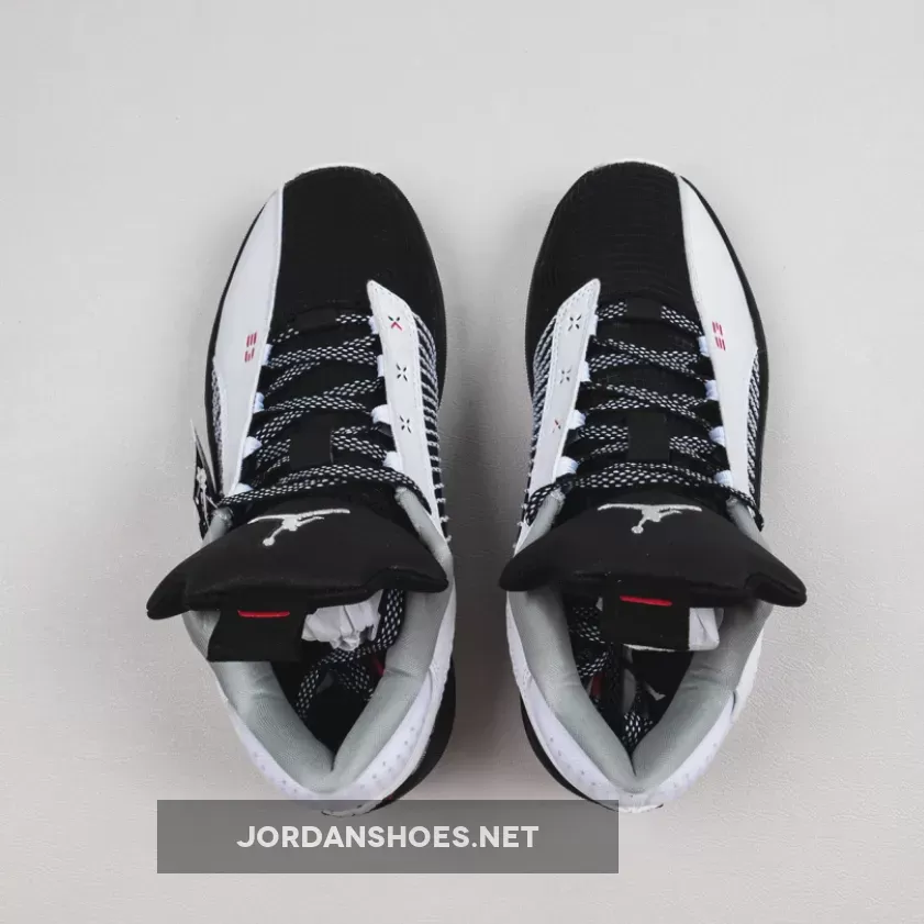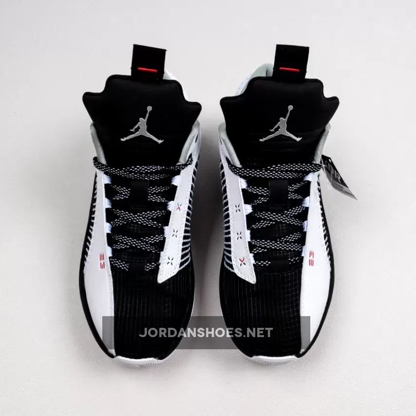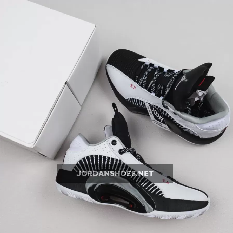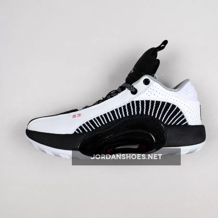 Solid colorway on the Air Jordan 35 Low. Good combo of black and white with pops of red. Clean design and comfortable fit. #AJ35Low #BasketballShoe