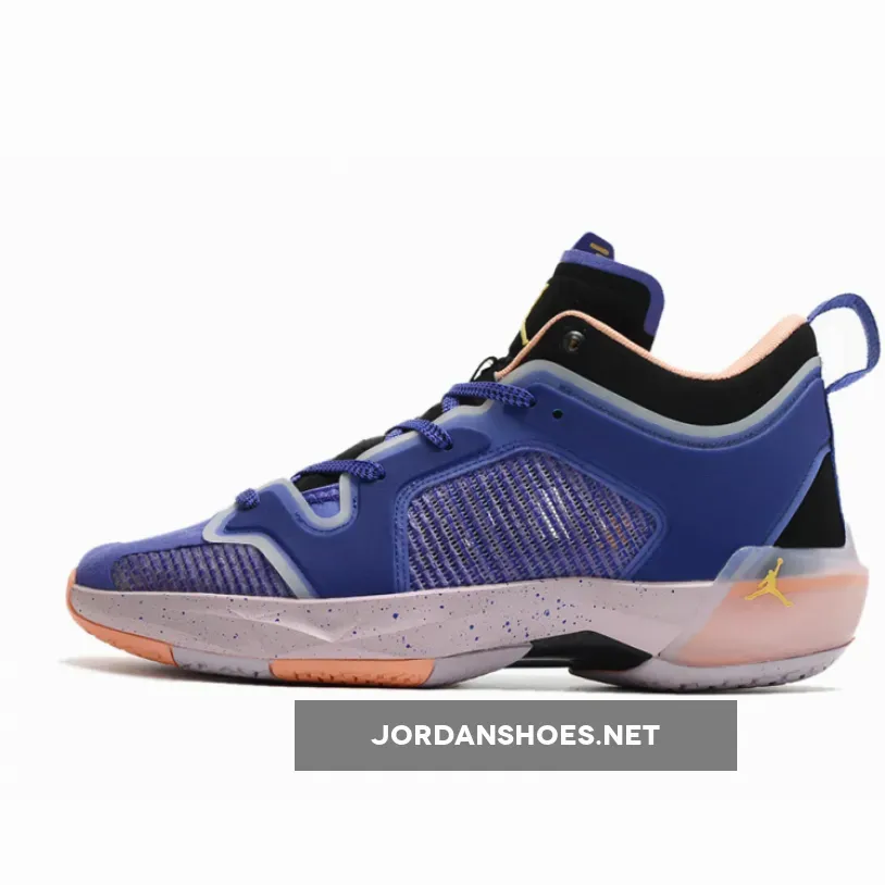This Air Jordan 37 Low comes dressed in a Lapis, Saturn Gold, Black, Crimson Bliss, and Iced Lilac color combination . This offering of the Air Jordan 37 Low comes constructed with woven mesh panels and leather overlays. Some of the other details includes Michael Jordan’s signature along the heel pull tabs, a carbon fiber plate at the midfoot with a soft Formula 23 foam at the heel completes the design.