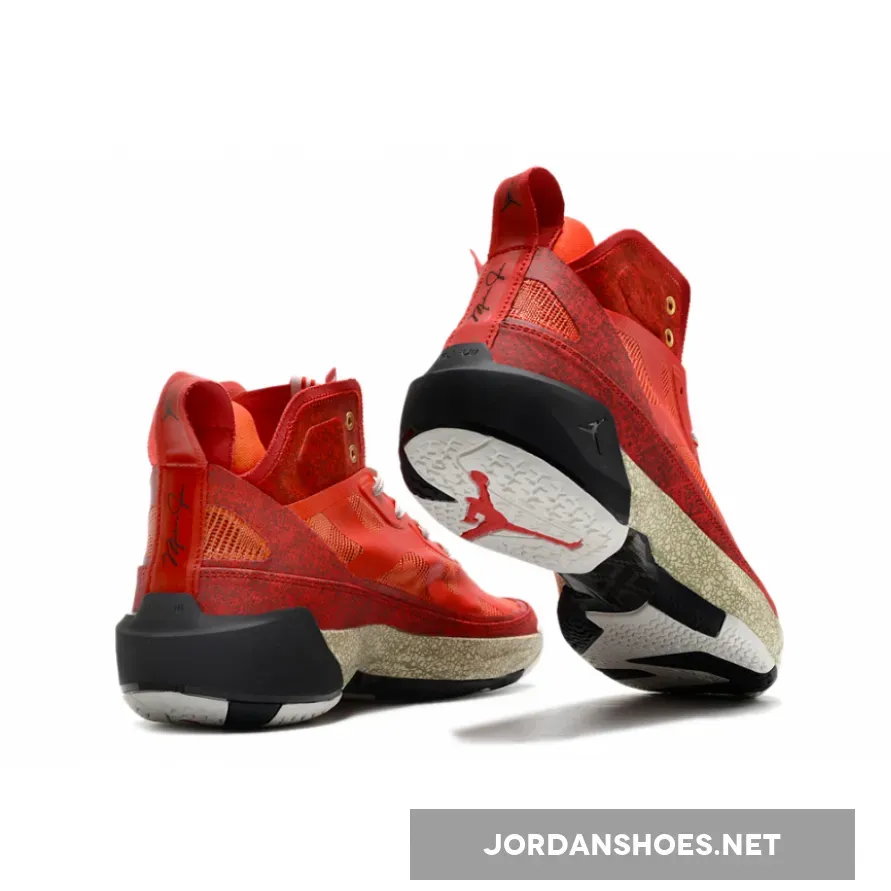 The red upper is made up of Levoweave which brings breathability without sacrificing strength with an exoskeleton built into the upper to bring more support.Now, Hachimura approaches the new Air Jordan 37 for the first time, opting for a bold “Siren Red” colorway. Its Lenoweave upper carries the red throughout with its collar, mudguard and heel counter in a foil finish. Formula 23 cushioning appears at the off-white midsole alongside a visible carbon fiber midfoot shank and Zoom Air strobel unit. As for thematic detailing, Hachimura’s logo appears on the tongue and Japanese-themed sockliner.