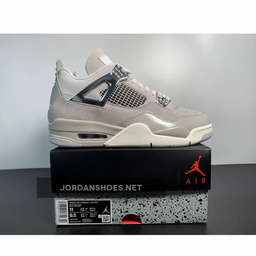 “I’m thrilled with my new AJ4 ‘Frozen Moments’! ? The shoes look even better in person, the grey and beige combo is stunning. Shipping was quick, arrived in 3 days. ? Fit is true to size, comfortable out of the box. Highly recommend for any Jordan fan! ?”