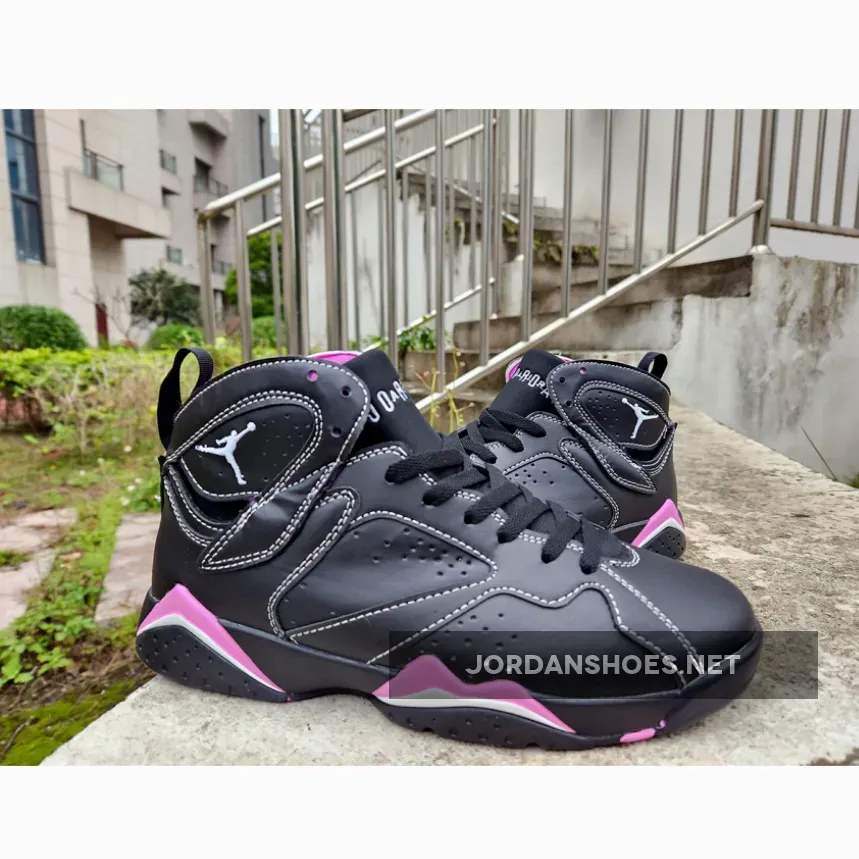 The Jordan Brand’s Tinker Hatfield-designed b-ball silhouette inspired by African tribal culture and art, the Air Jordan 7, has a new iteration with bright bursts of purple and pink. Check out the Air Jordan 7 GS Barely Grape. This smaller-sized high-cut AJ7 has a “Black/ Barely Grape/ Rush Fuchsia” colour arrangement. The entire shoe is dressed in black smooth leather from heel to toe and from base to overlays. Contrasting exposed stitching in Rush Fuchsia line all the overlays. The embroidered Jumpman logos on the lateral collars and insoles are in Barely Grape. The plush sock liner and tongue lining and the geometrical midsole accents also follow suit. A black sole unit finishes off the look of these kicks. Nab the Air Jordan 7 GS Barely Grape on Our Store Supplier app and always be ready to learn about new introductions from the release calendar of Nike and the Jordan Brand.