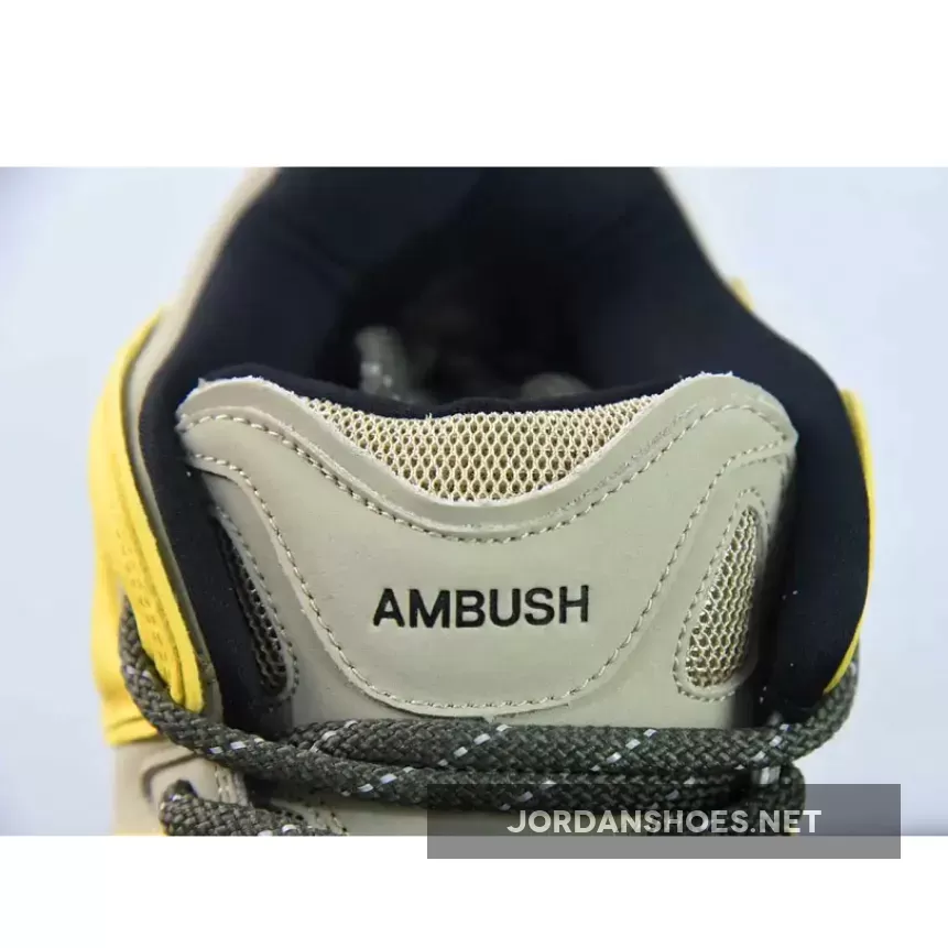 Additional branding includes a Swoosh on the heels and the AMBUSH stamp on the midsole’s heel, while co-branded details adorn the insoles. Yellow accents accentuate the signature “AIR” lettering, while Olive-colored shoelaces contrast the solid Black rubber sole, resulting in a visually striking design.