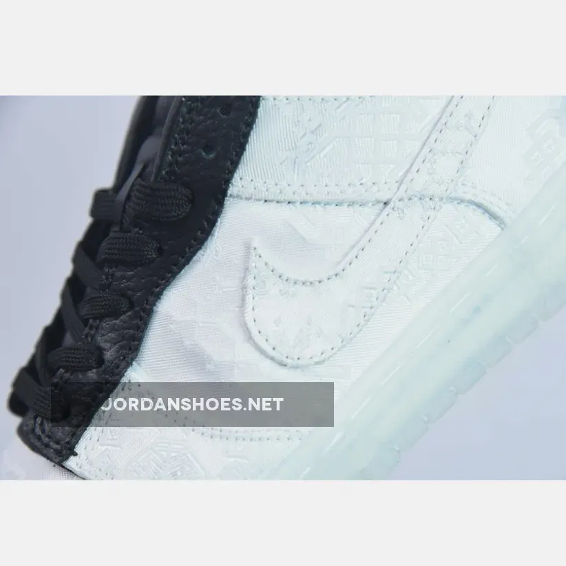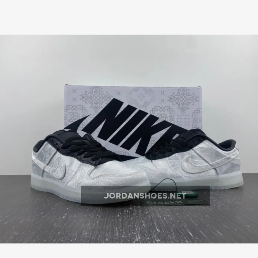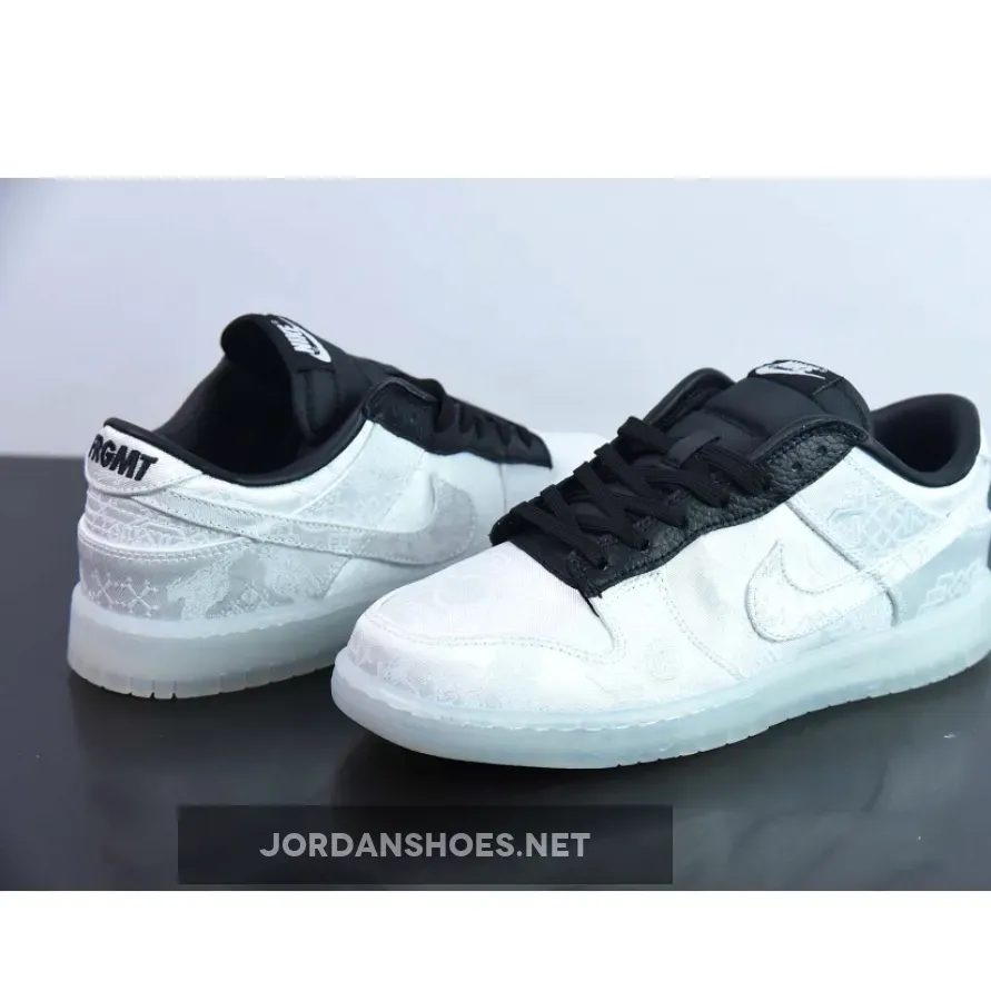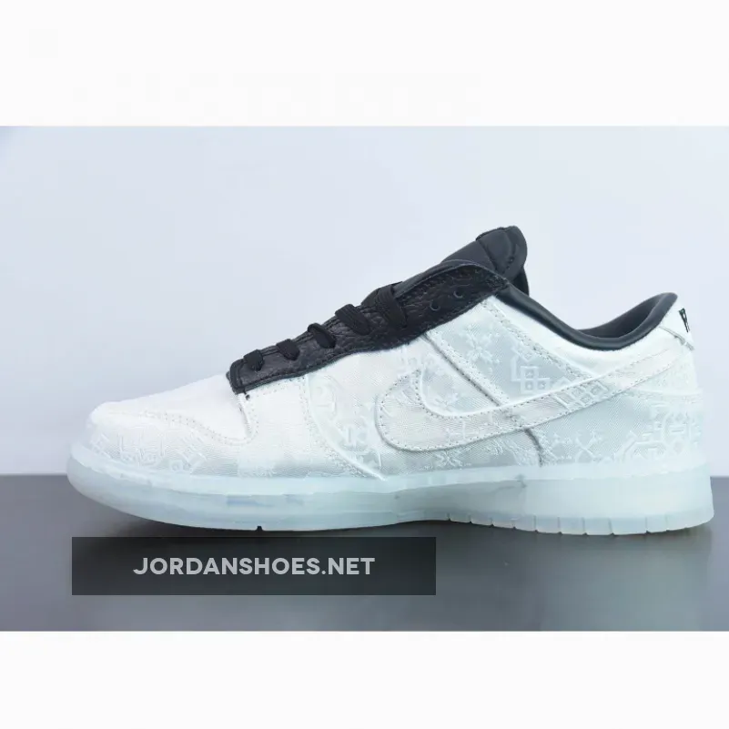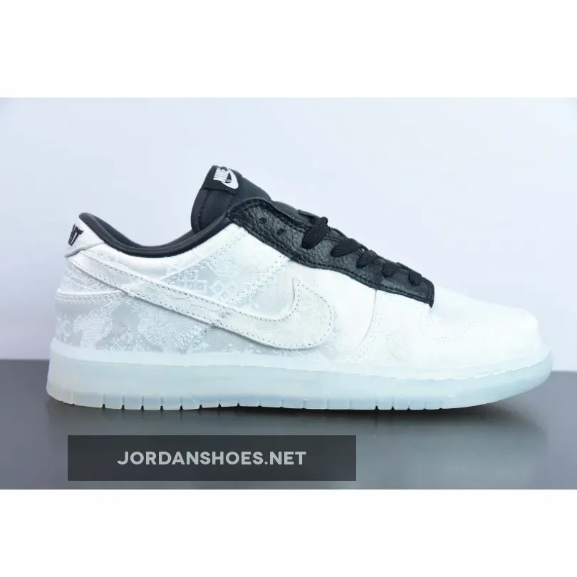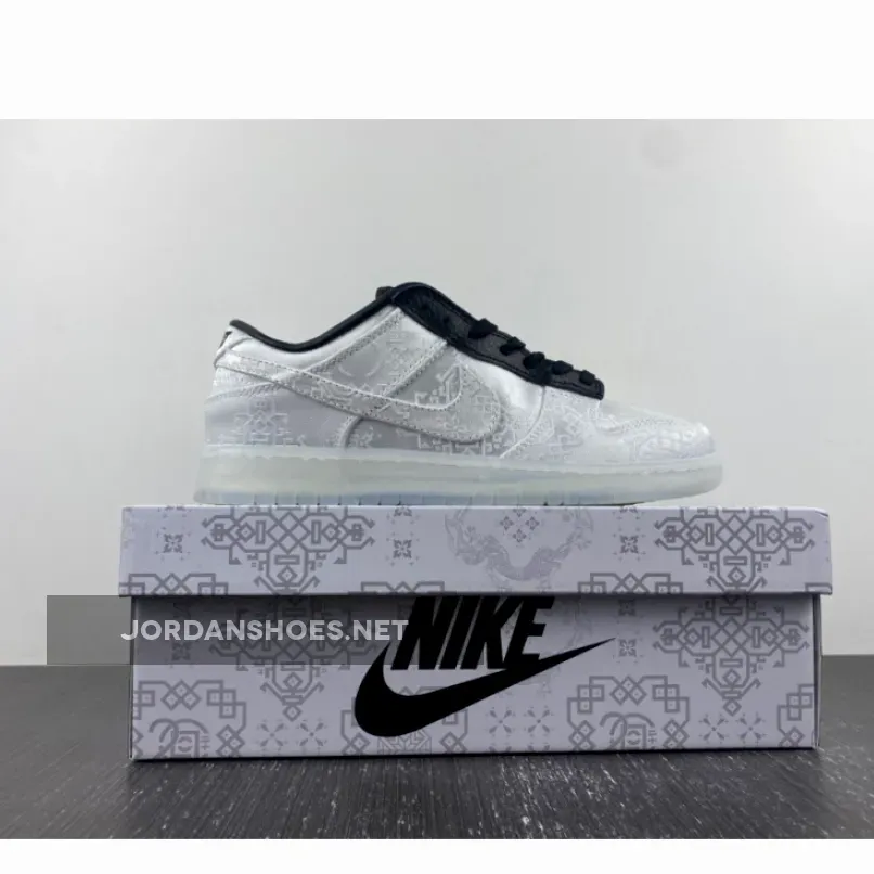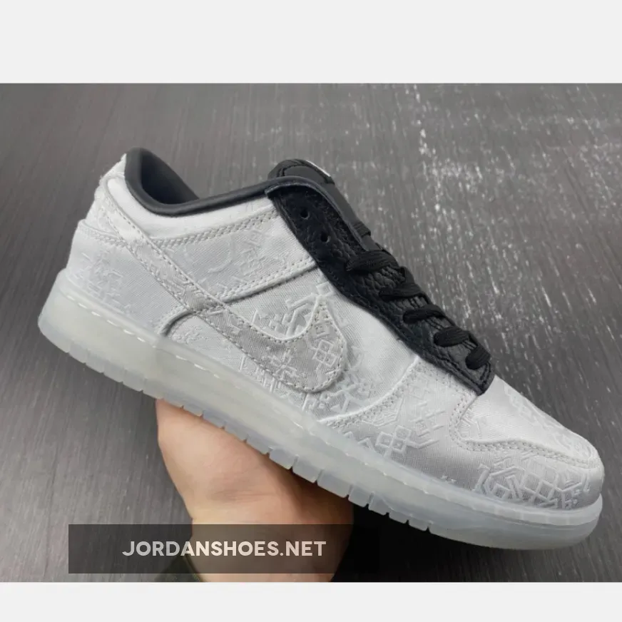 the Clot x Fragment x Nike Dunk Low features a tearaway silk upper in White with Black leather eyestays and lining atop a translucent outsole. “FRGMT” branding is embroidered on the heels, while co-branded Clot and Fragment logos are stamped onto the insoles. The shoe will also come housed in special packaging.