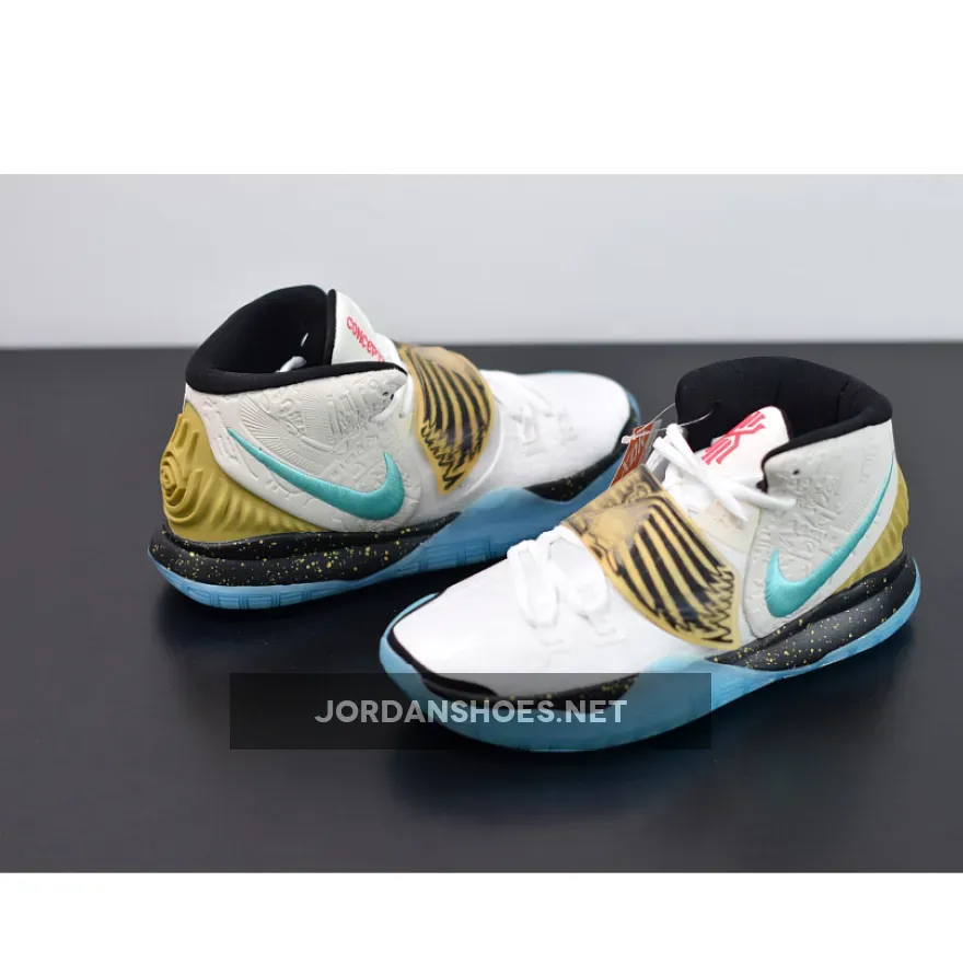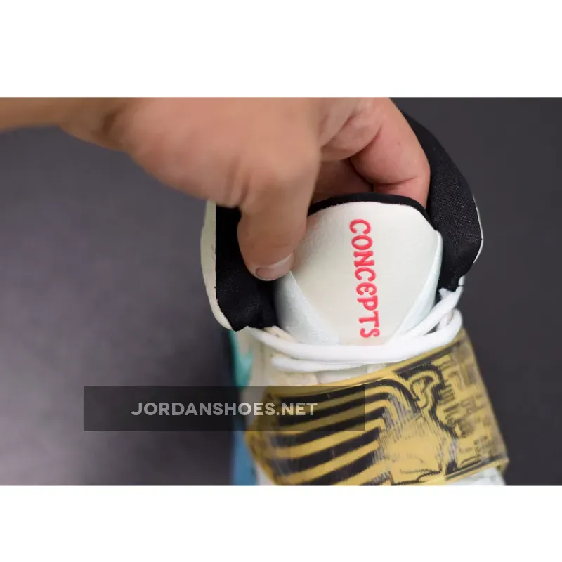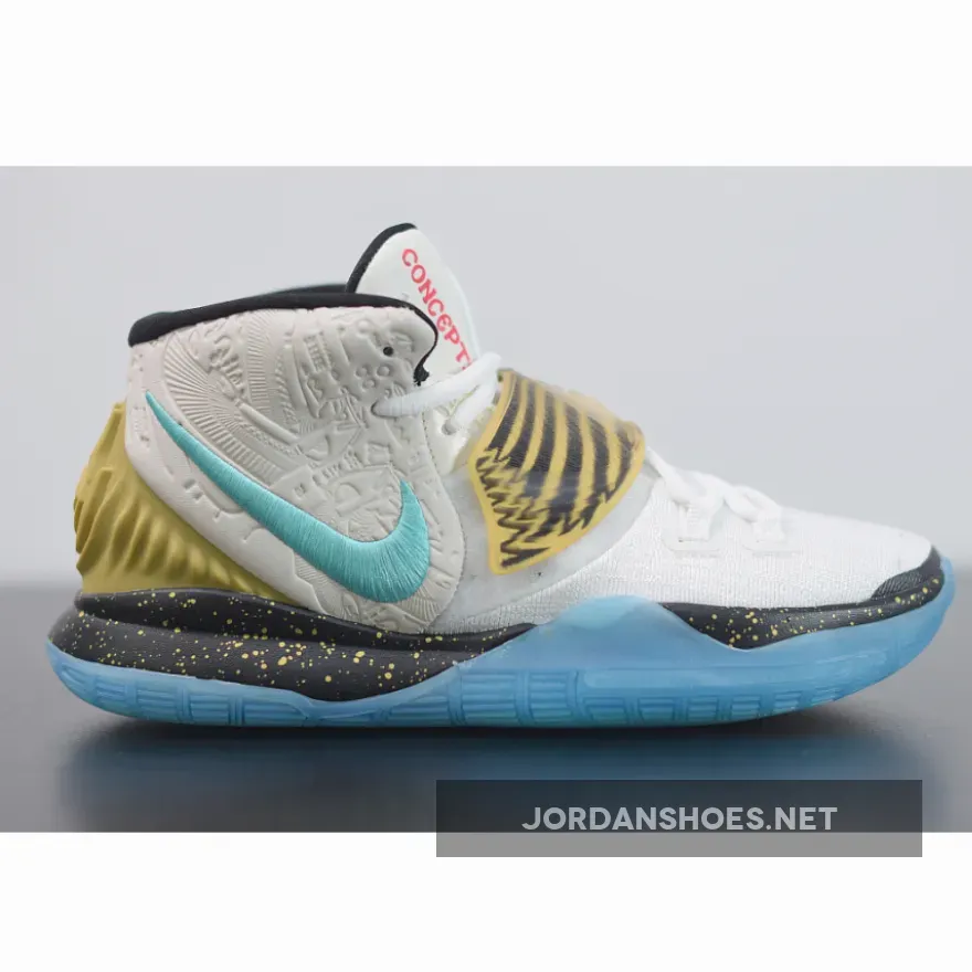 “I’m super stoked on these Concepts x Nike Kyrie 6 ‘Golden Mummy’ kicks! The turquoise and cherry red accents are so bold and eye-catching. The sail upper is a nice nod to ancient Egyptian burial cloths. Comfortable fit, great quality materials. Perfect for sneakerheads who appreciate unique design inspiration.”