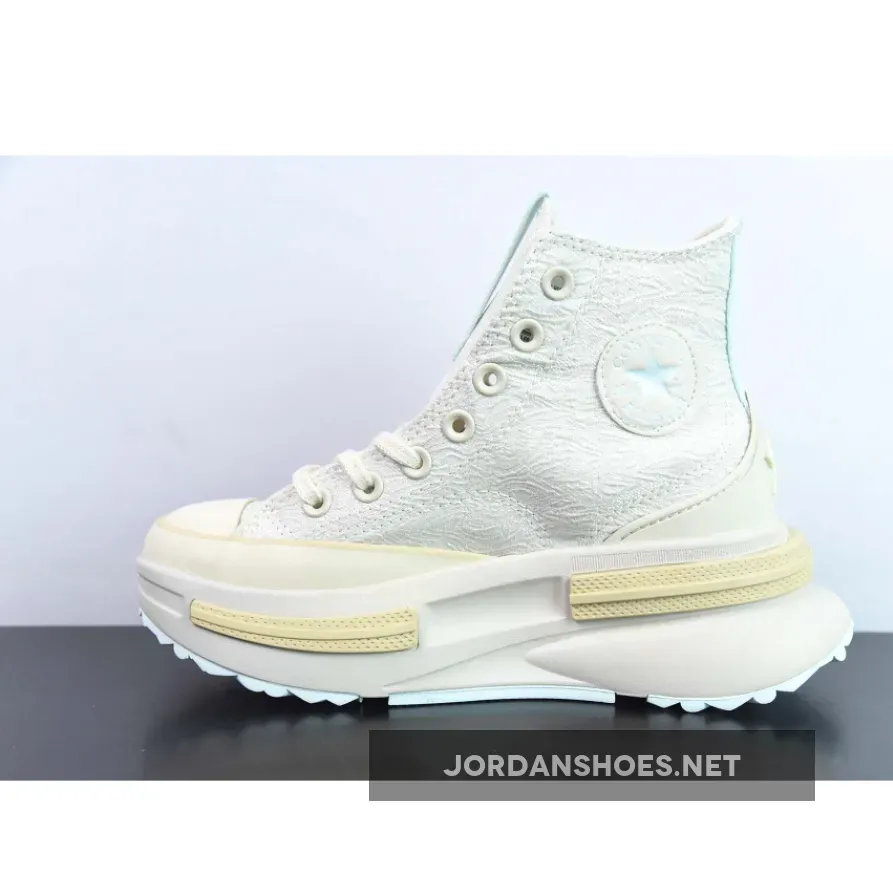 This pair High-top design with an upper made from 50% recycled cotton canvas delivers comfort. This Converse High-top platform shoe with jacquard upper and Lightweight EVA and comfortable CX Foam cushioning help you stay light on your feet and Exaggerated collar and canvas winged tongue for ease of entry, they have Iconic Chuck Taylor ankle patch and One Star heel accent.