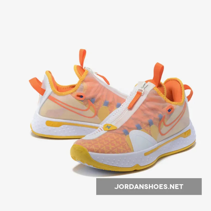 This offering of the Nike PG 4 features a mix of Orange tones throughout its entire upper with a sheer mesh shell. Other details includes Blue eyelets, Gatorade branded insoles atop a White midsole and rubber outsole.