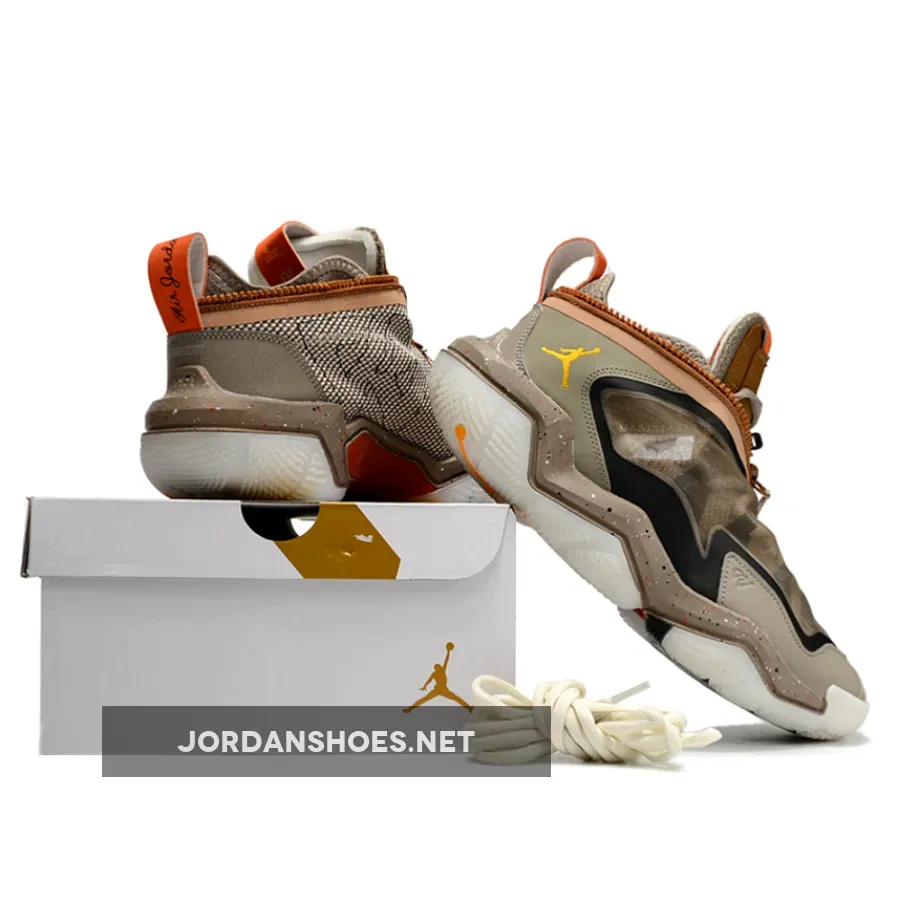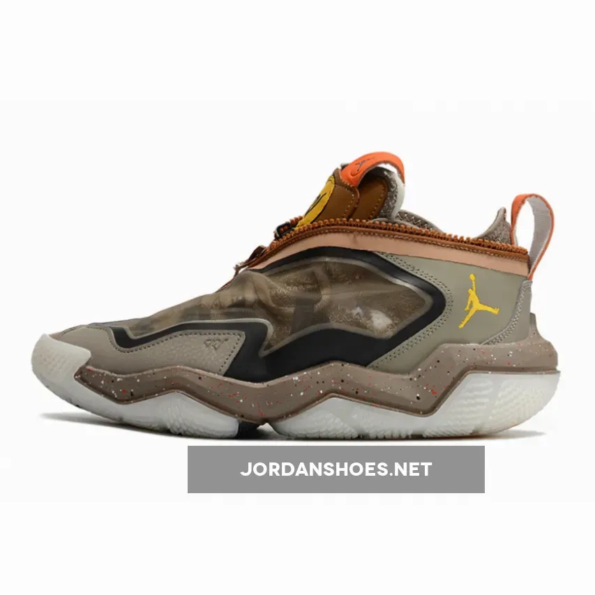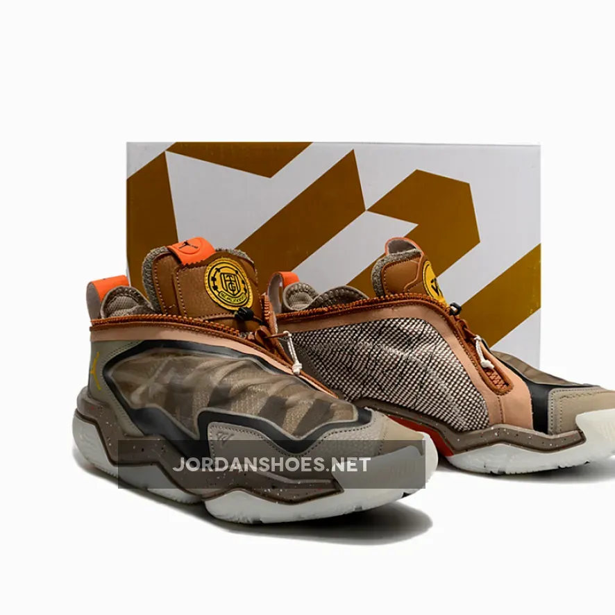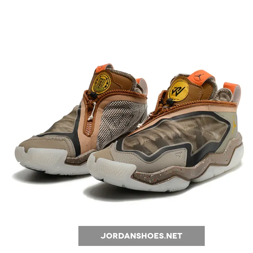 This Jordan Why Not .6 comes dressed in a Pecan, Yellow Ochre, Phantom, Campfire Orange, Moon Fossil, and Black color combination. throughout its mesh, leather, and suede construction. Further elevating this low-top offering is a signature semi-translucent zipper shroud, varsity-inspired branding on the tongues, and a patchwork design emblazoned on the insoles.