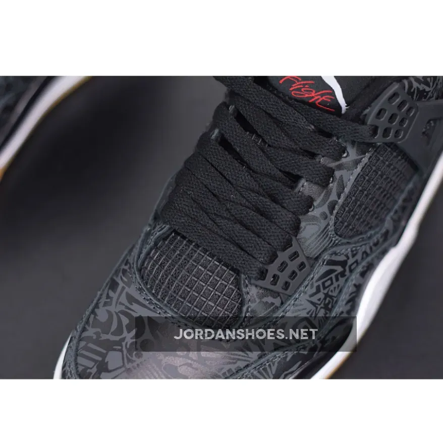 Dressed in a Black, White, and Gum Light Brown color scheme. This Air Jordan 4 features a Black leather upper with 3M laser graphics. Red hits are seen on the “Flight” of the tongue and Jumpman logo on the outsole, while having White Jumpman logos on the tongue label and heel. A White midsole and Gum rubber outsole completes the design.