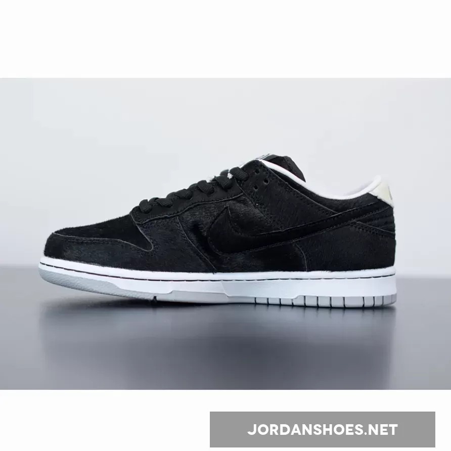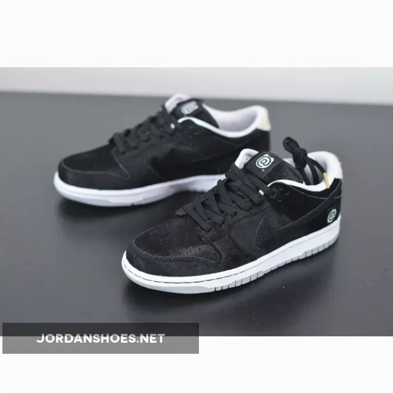 This offering of the Nike SB Dunk Low comes fully covered in a Black hairy upper with Sail-colored hairy heel tabs. A White signature BE@RBRICK logo appears embroidered onto the heel completed with a White midsole and translucent outsole.