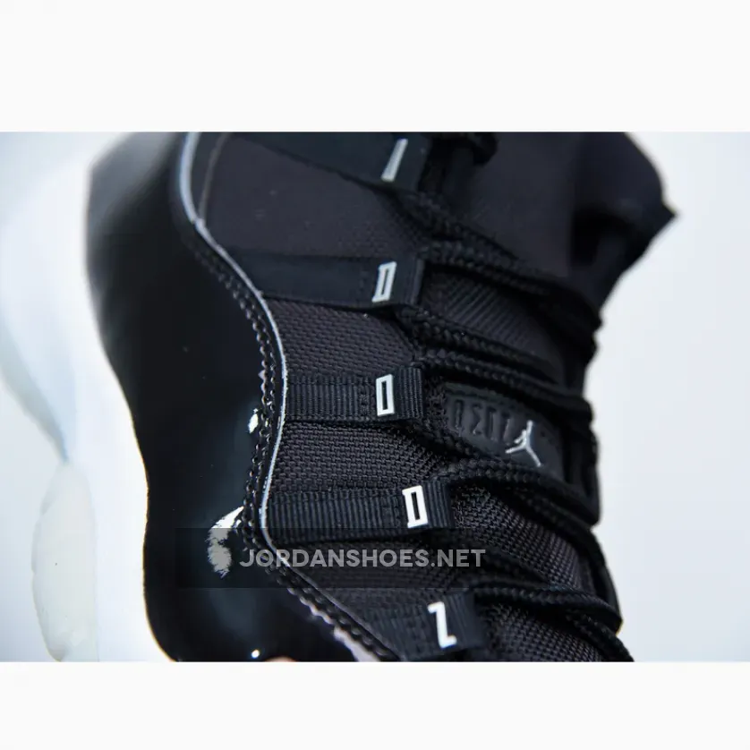 This Air Jordan 11 25th Anniversary features an all black upper with metallic Jumpman logos on the heel, a white midsole, and an opaque outsole for an outstandingly sharp colorway. For the first time ever, “JORDAN” will appear via metallic lettering on the eyelets – an early design choice by Tinker Hatfield. The Air Jordan 11 DMP from 2006 was also set to feature this unique detail, but once again it was ultimately shelved – although some pairs managed to leak out and become hot collectors items.