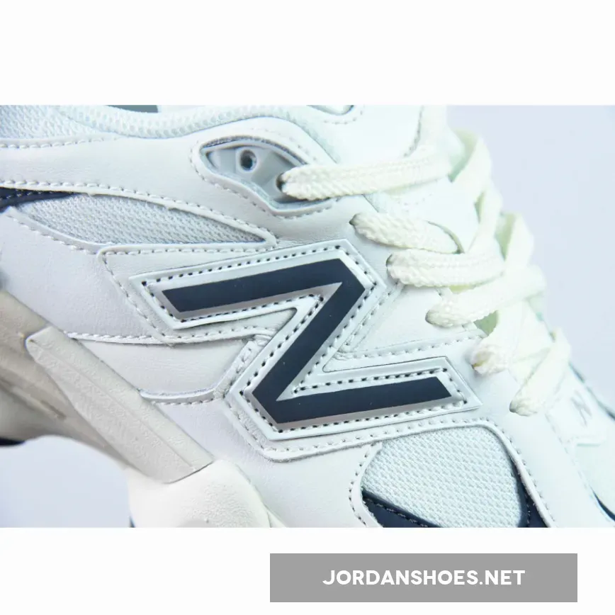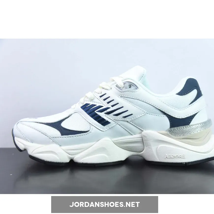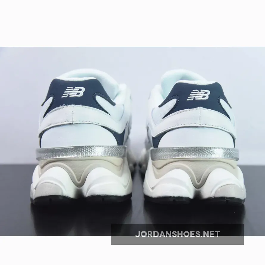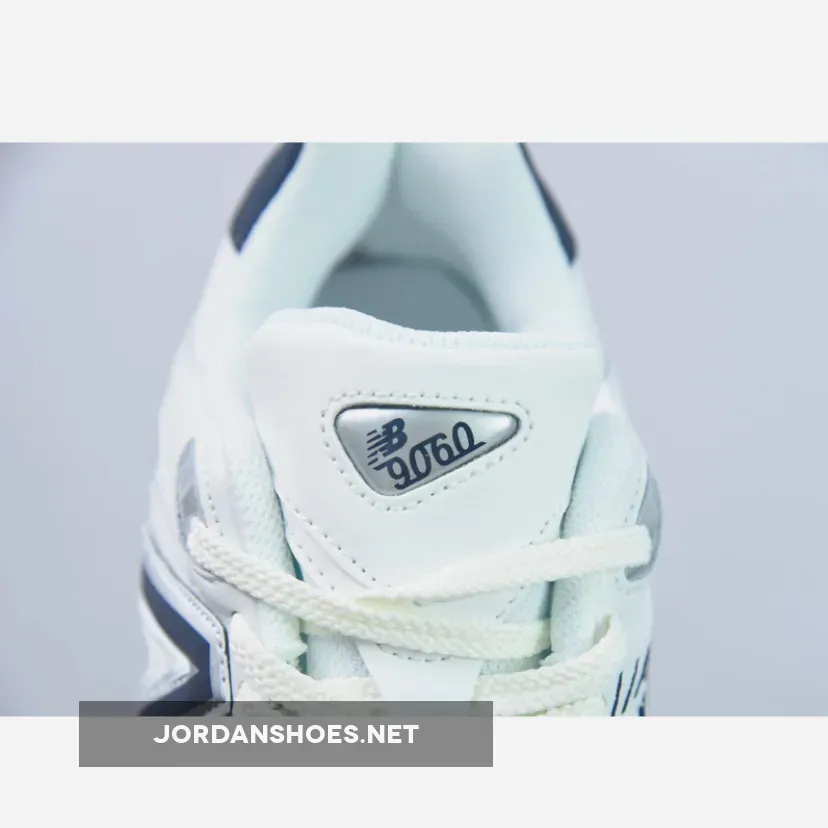 This offering of the New Balance 9060 feature a White mesh base with matching leather overlays and Navy contrasting accents.
