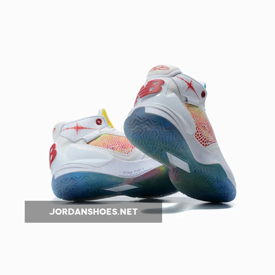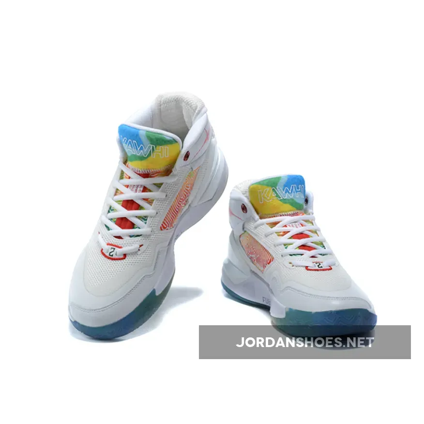 But though the aforementioned has effectively become his own, it’s technically not his first signature silhouette; rather, that title is now owned by the eponymous KAWHI that made history as it stepped on court for the first time tonight. Replete with a minutia of detail, the pair starts its base relatively simple and neutral, as white mesh and synthetics cover from the midsole upward. Side panels, however, infuse a well-needed mix of color as orange, blues, and reds thread an abstract mosaic in perpetuity, warping upwards to a tongue whose tones prefer a more watercolor appearance. Along the ankle, an aggressively high frequency lays out in bright red across a backdrop of cool tone grids, sitting quite close by to logo hits associated with not only the athlete but also the Boston institution