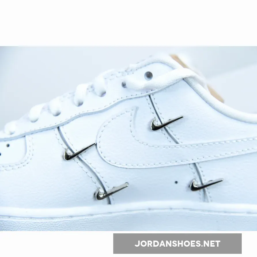 Delivered not solely through quality or price tag, these specific pairs seem to bear many an embellishment, the most significant example of which adding colorful jewels down its tongue. Far more subtle by comparison, the next up achieves a similar expensive aesthetic with a small handful of mini metallic swooshes. These dress around their larger leather complement, polished on both the lateral and medial; elsewhere, triple white palettes seem to contrast with ordinary presentation, though the blue branded tongue and floral-patterned insole add extremely subtle yet welcome point of distinction.