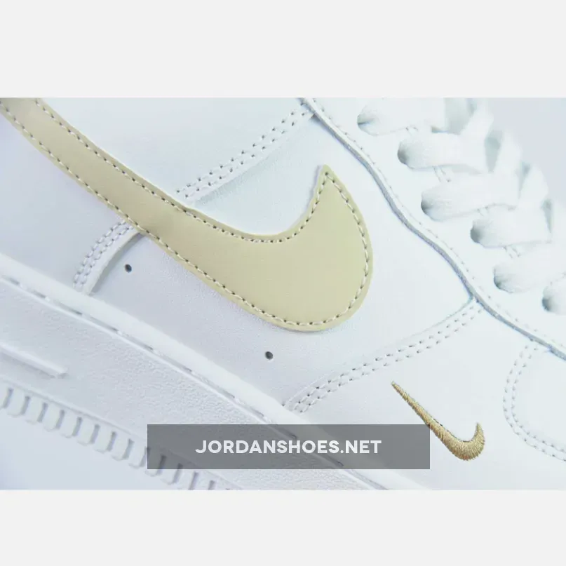 Starting off as a clean all-white Air Force 1, the sneaker features a pristine smooth leather construction all over the upper with contrasting Rattan detailing placed on the Swooshes, heel tabs, insoles, and tongue tags. Continuing the premium aesthetic is the addition of Metallic Gold on the lace dubraes, tongue and heel branding, and the embroidered mini Swoosh on the lateral midfoot.