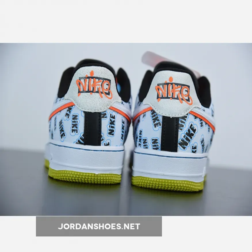 Its rear paneling is surely its most eye-catching section as it sports all-over graffiti-like Nike branding which some can even argue look very similar to the SpongeBob “A Few Moments Later” font. While not officially tied to the animation series, elsewhere on these AF1s you’ll find Nickelodeon-esque accents dispersed throughout the orange mesh throats, under-stacked Swoosh logo and heel branding, yellow treading reminiscent of Mr. Squarepants himself, and bright blue shoe strings that channel Squidward vibes.