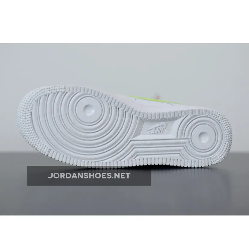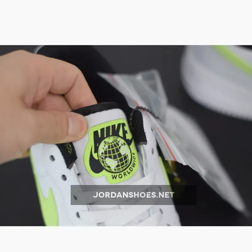 ‘Nike World’ appears embroidered on to the heel of the sneaker in white and volt, whilst the insoles have also been updated with ‘Worldwide’ printed in white against the black fabric. High levels of comfort are assured with the legendary, Air-cushioned sole and the rubber outsole for traction and durability. The low cut collar and perforation holes across the toe box take the comfort up a notch, so you can wear this white green AF1 all day long.
