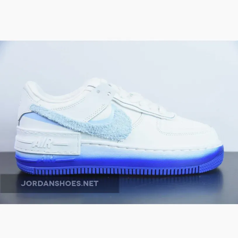 Consistent with others from the collection, the Shadow AF-1 rocks a clean white canvas upper, pastel tints on the chenille Swoosh markings, and airbrushed finishes to the outsole;Infusing a touch of pastels along the duo of “Powder Blue” mid-foot Swooshes, the presiding Check enjoys a disparate chenille textile in tandem with the undone aesthetic of its laces.