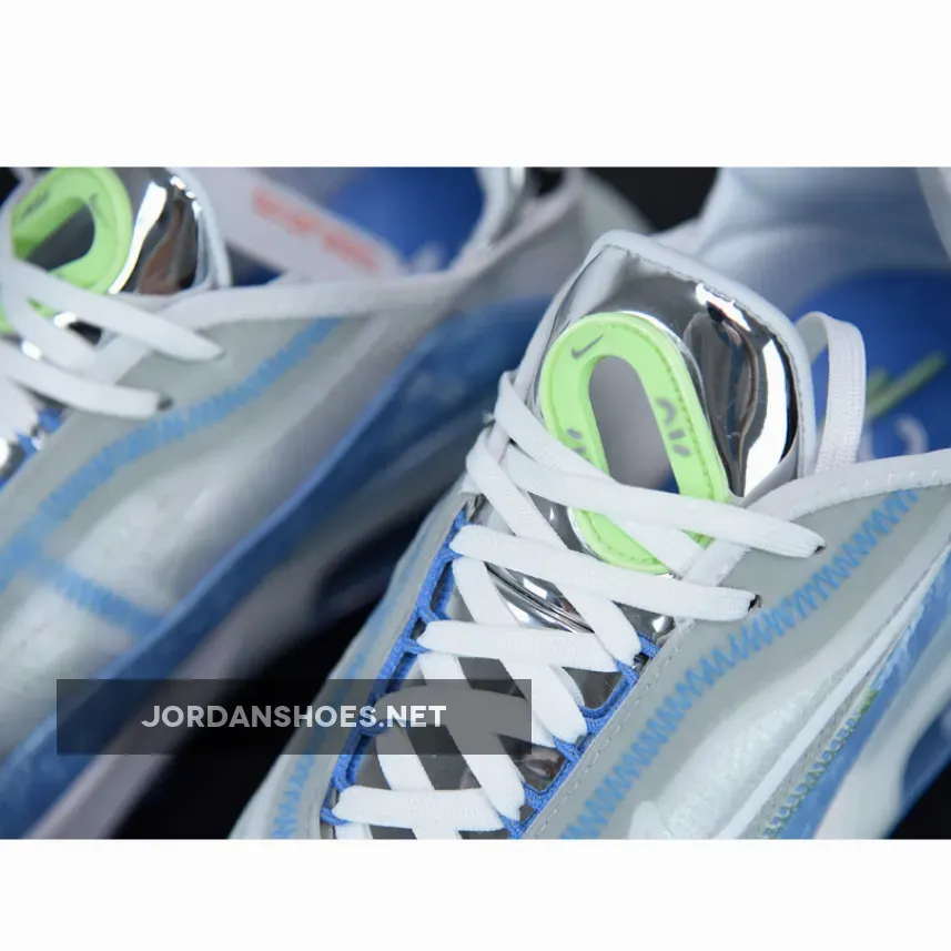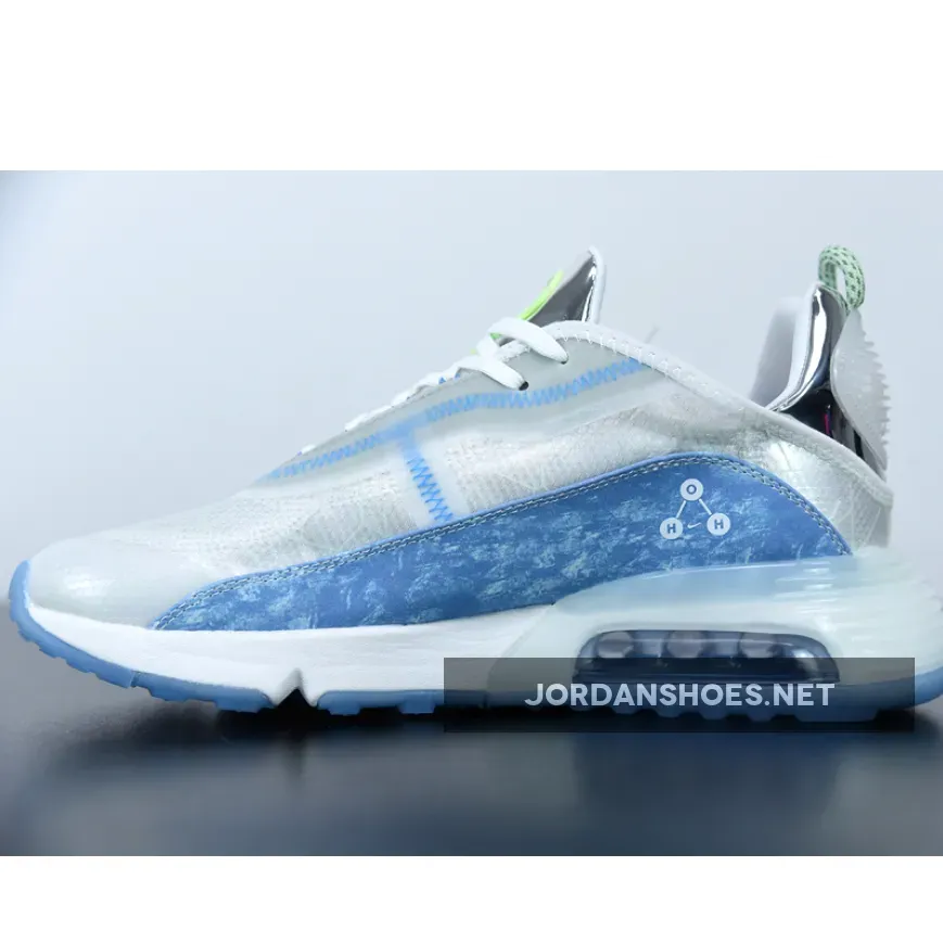 Save for the near-translucent uppers that take up most of its space, it’s the oceanic wallpapers that stand out overtly as they wrap the lateral and medial mudguards, the latter of which also comes decorated with an actual graphic of the H2O chemical compound. Furthermore, extremely fainted green accents apply to the molecule-like symbols found from the toe tips to the mid-foot, as well as atop the tongue molds and heel loops.