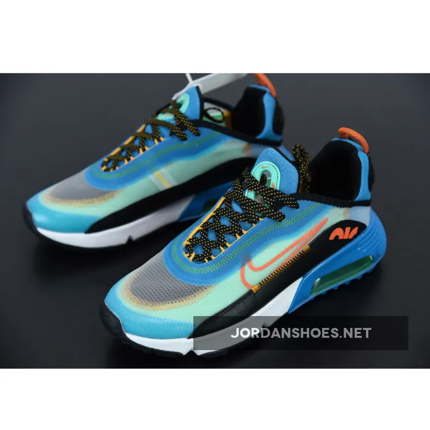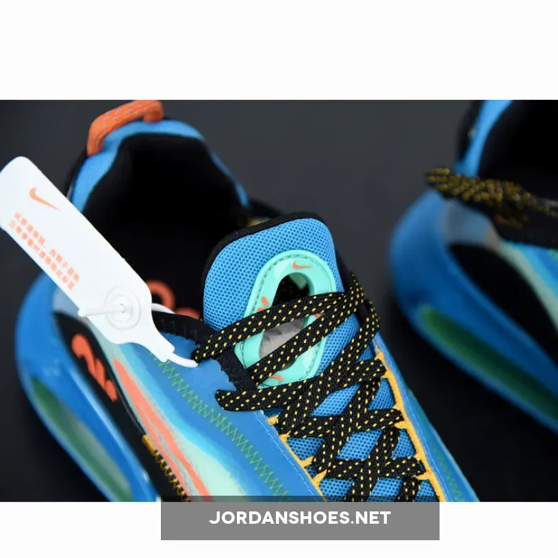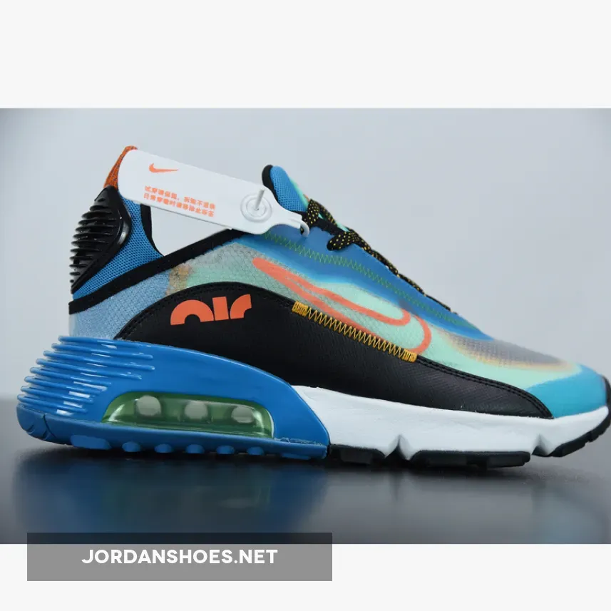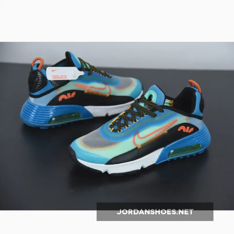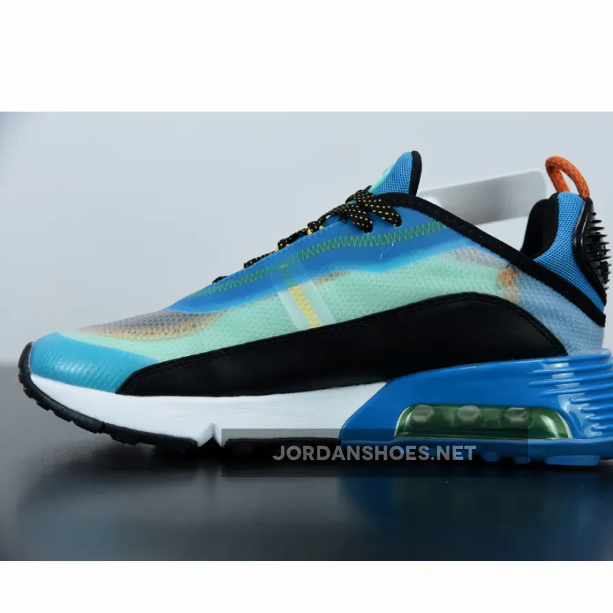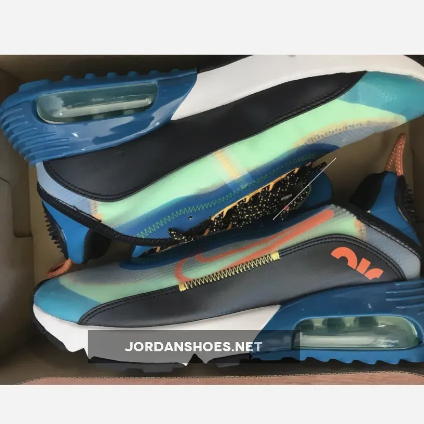 In color blocking galore, teal translucent overlays sit atop a mint green base. Bright oranges and yellows are used for the swoosh, lace loops, heel loops, and contrast stitching details to add warmth to the color palette. These bright hues are balanced by a jet black Air Max 90-inspired mudguard. For final, hiking-inspired flair, the black shoelaces have orange stitchings reminiscent of the durable laces on other hiking shoes.
