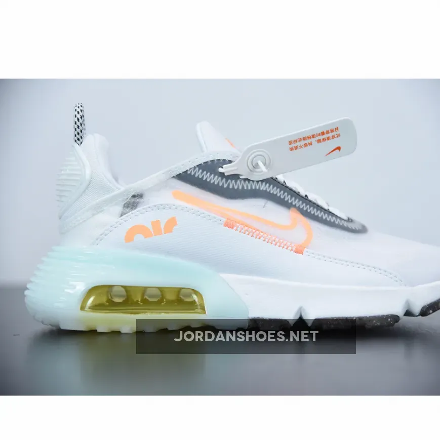 Dressed in a White, Total Orange, and Laser Orange color scheme. This Nike Air Max 2090