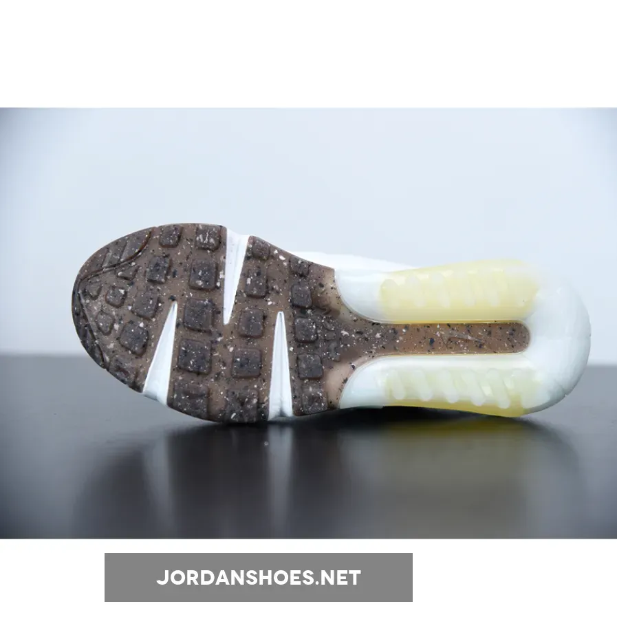 features a transparent upper with White tumbled leather mudguards and mesh covering the tongue and heel. Highlighting the shoe are Orange contrasting accents completed with the Nike Grind technology in the soles.