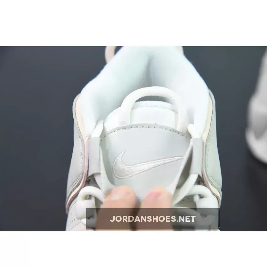 Adding to the range, a newly-revealed colorway sees shades of off-white accented by a soft pink. Its construction begins with an upper that is detailed in leather with typical perforations scattered throughout. It toggles between various creamy white hues as the signature “AIR” lettering covers both sides of the sneaker. Adding color into the mix, a pastel pink appears around the lettering, at the embroidered Swooshes located at the toe and the heel stamps on each side to complete this Air-infused look.