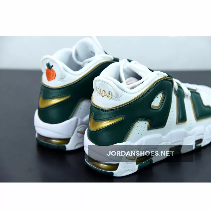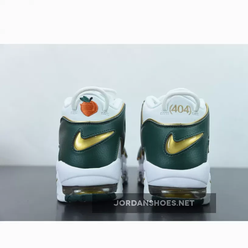 This “Atlanta” edition of the Nike Uptempo is inspired by Scottie Pippen winning a NBA Championship and Olympic Gold Medal in the same year. Its color scheme is a nod tot the Atlanta 1996 Olympics. Highlighted with an oversized “ATL” on the sides with an embroidered Georgia Peach logo and the OG Atlanta 404 area code on the heels. A White leather with perforated detailing covers the upper, while having Gorge Green and Metallic Gold accents.
