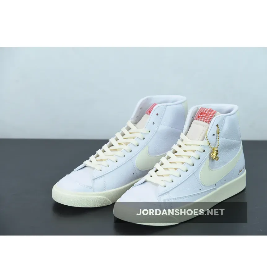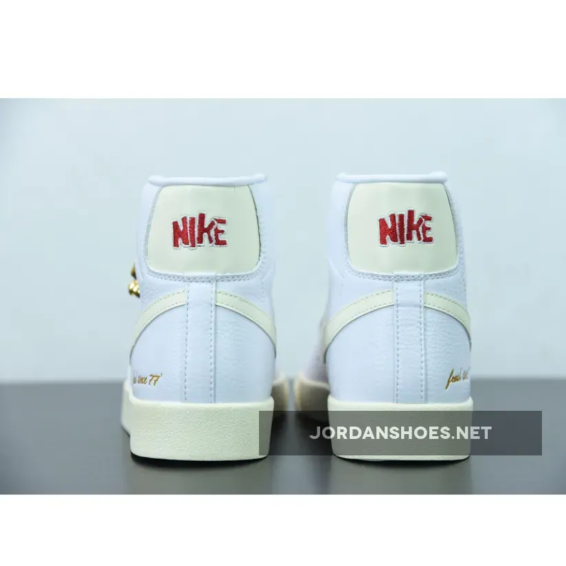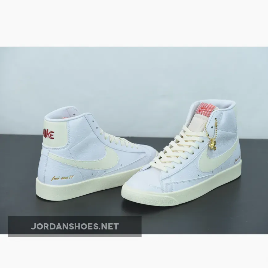 The pair features some golden debossing around the rear heel that reads “Fresh Since 77” as a homage to the models founding year. Its backing features the tumbled leathers that the Blazer Mid uses. Then, to further match the red embroidered brand names and retro-styled Nike lettering, “Coconut Milk” hued laces, midsole, swooshes and heel tabs offer a dash of vintage flair. Finally, the sneaker includes a keychain in the form of popcorn in complete gold.