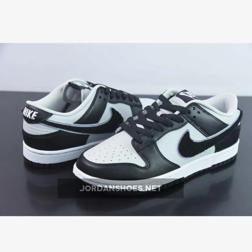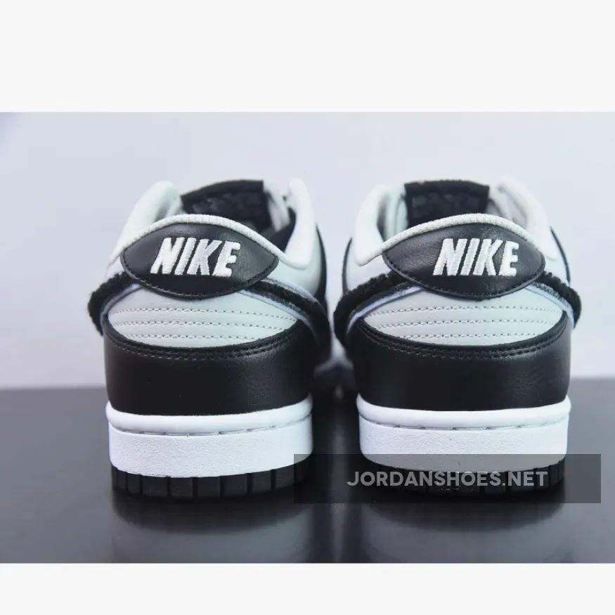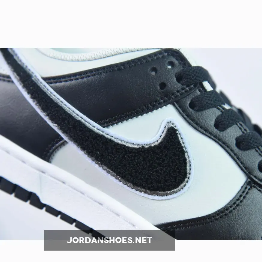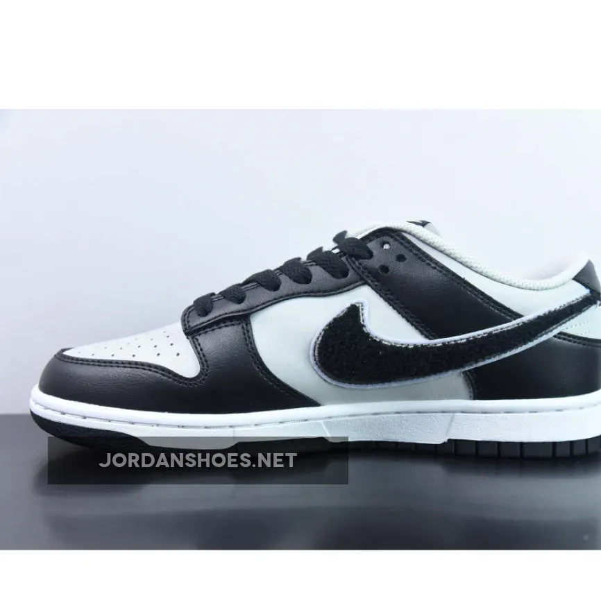 The Peter Moore-designed Nike Dunk has featured a lot of materials and looks in its 37 years of existence, from snakeskin to leopard print to a wear-away design. The latest Dunk comes with a unique chenille Swoosh that hasn’t been seen on a Dunk in a long time. Meet the Nike Dunk Low Chenille Swoosh Grey Black.
