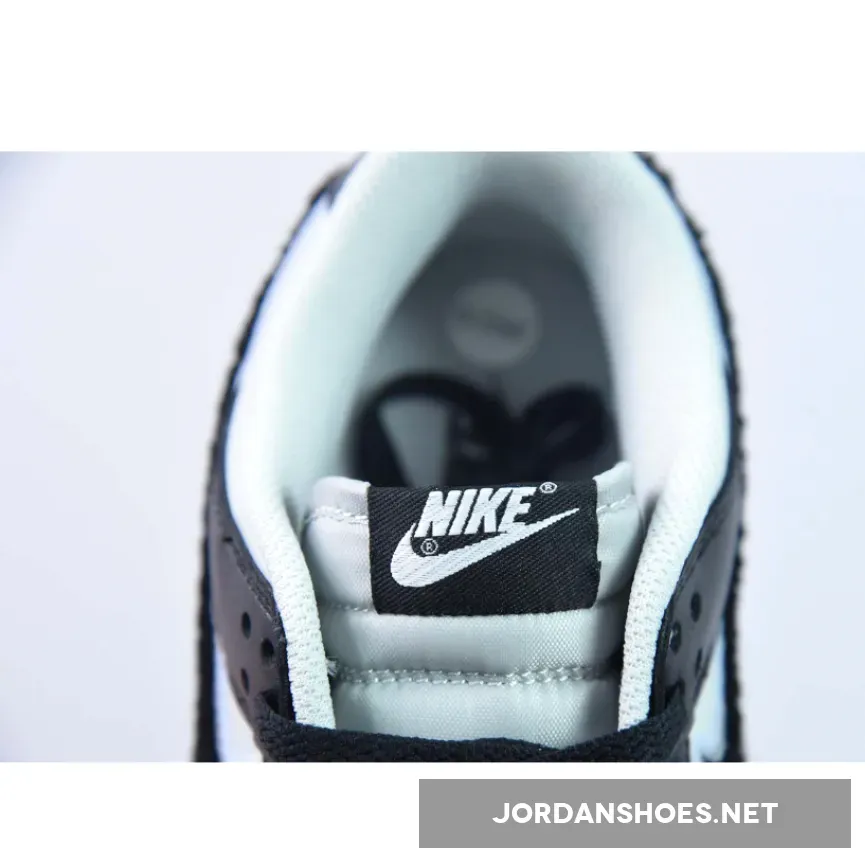 This Dunk Low has a classic two-toned palette. Its leather upper has a light grey base and black overlays.