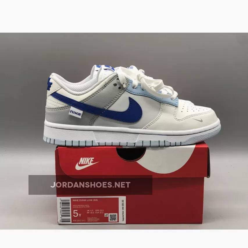 Dressed in an Ivory, Hyper Royal, White, Photon Dust, Grey Fog, and Celestine Blue color scheme. This offering of the Nike Dunk Low comes constructed in a full leather build with open mesh tongues. “NIKE” branding on the lateral tags, tongues, and insoles atop a two-tone rubber outsole completes the design.