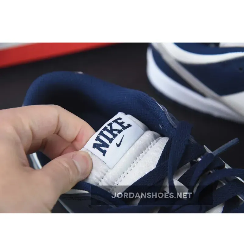 The swoosh logos are clad in a light grey premium suede, which gives them a metallic silver look. It matches the heel tabs, which feature varsity navy “NIKE” lettering branding and a clean white and navy sole unit underfoot.