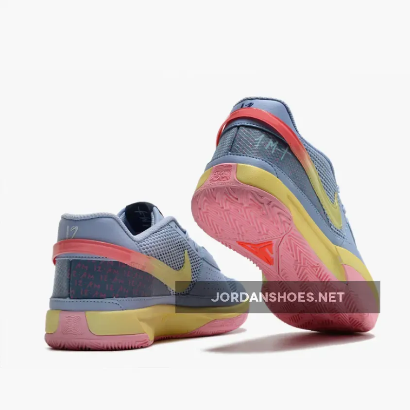 Looking at the shoe, Working with designers to craft a signature light blue color in homage to his blue-collar mentality, the cobalt blue-like hue stretches across the upper while lush yellows and pinks dress the sole unit and gradient infused within the full-length TPU Swoosh.Completing the release, nods to Morant appear at the tongue, unique sockliner, heel and packaging.