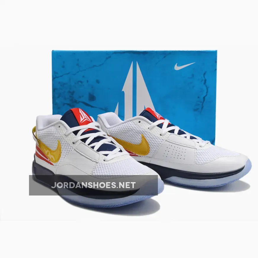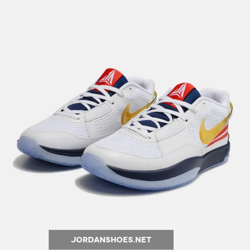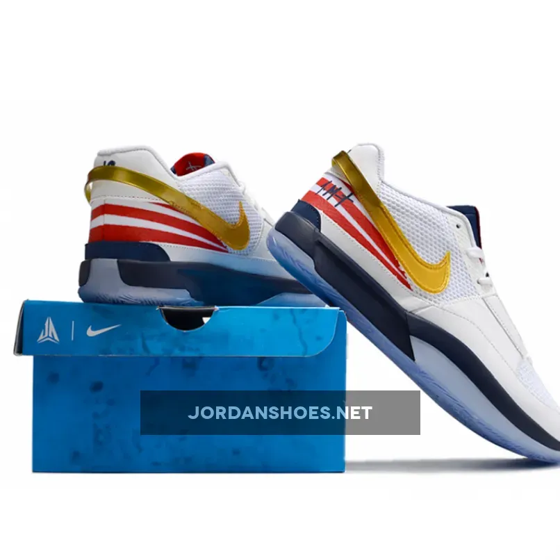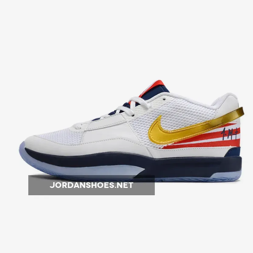Unleash your style with Nike JA 1 “USA” White Navy Gold Red from JORDANSHOES.NET.