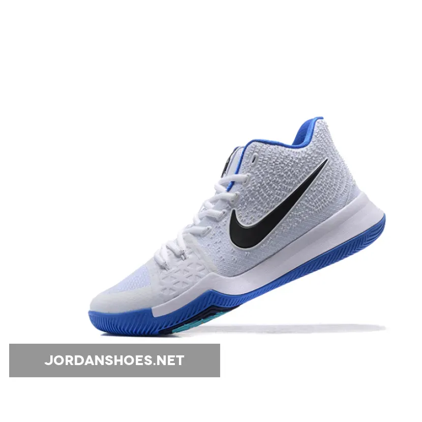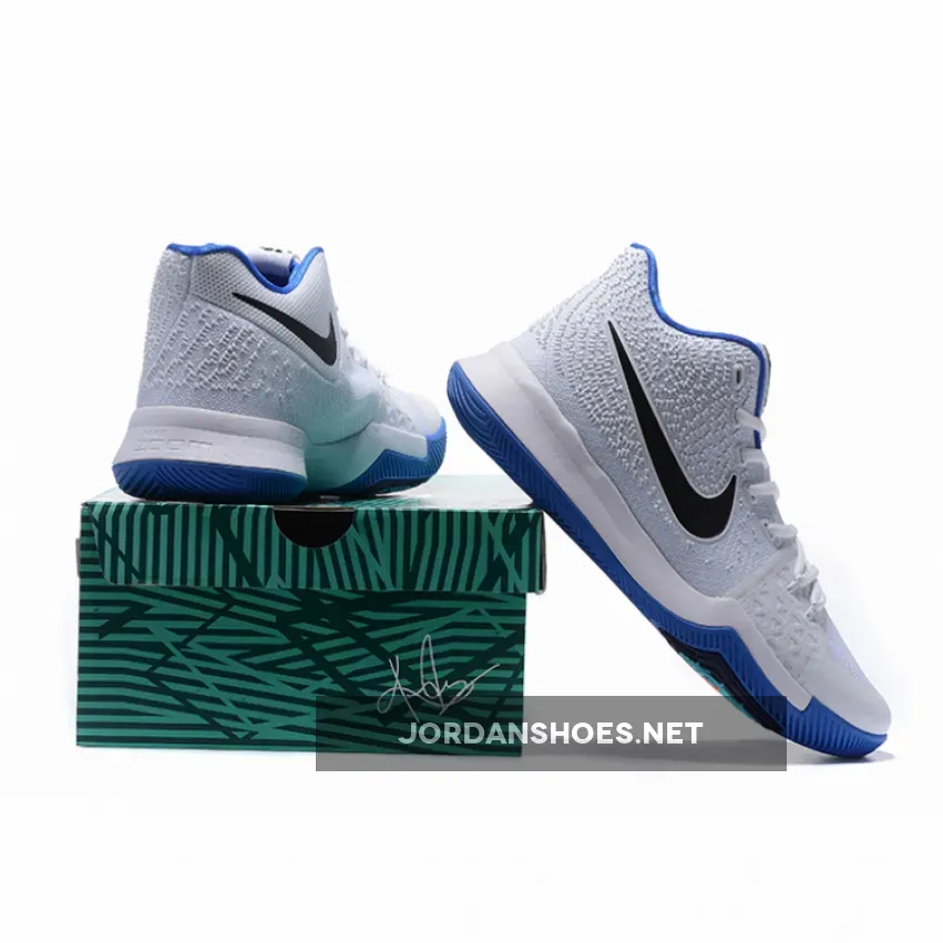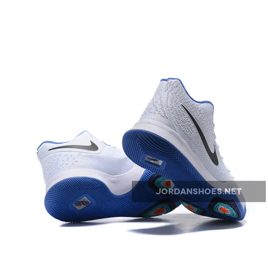 Using a predominantly white-based upper, this latest Nike Kyrie 3 release also features a black Swoosh, the protruding details on the upper, and the multi-colored stress points on the outsole of the shoes. Shades of Blue are seen throughout, while minor hints of Volt appear on the outsole.