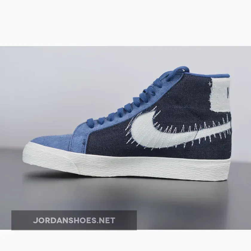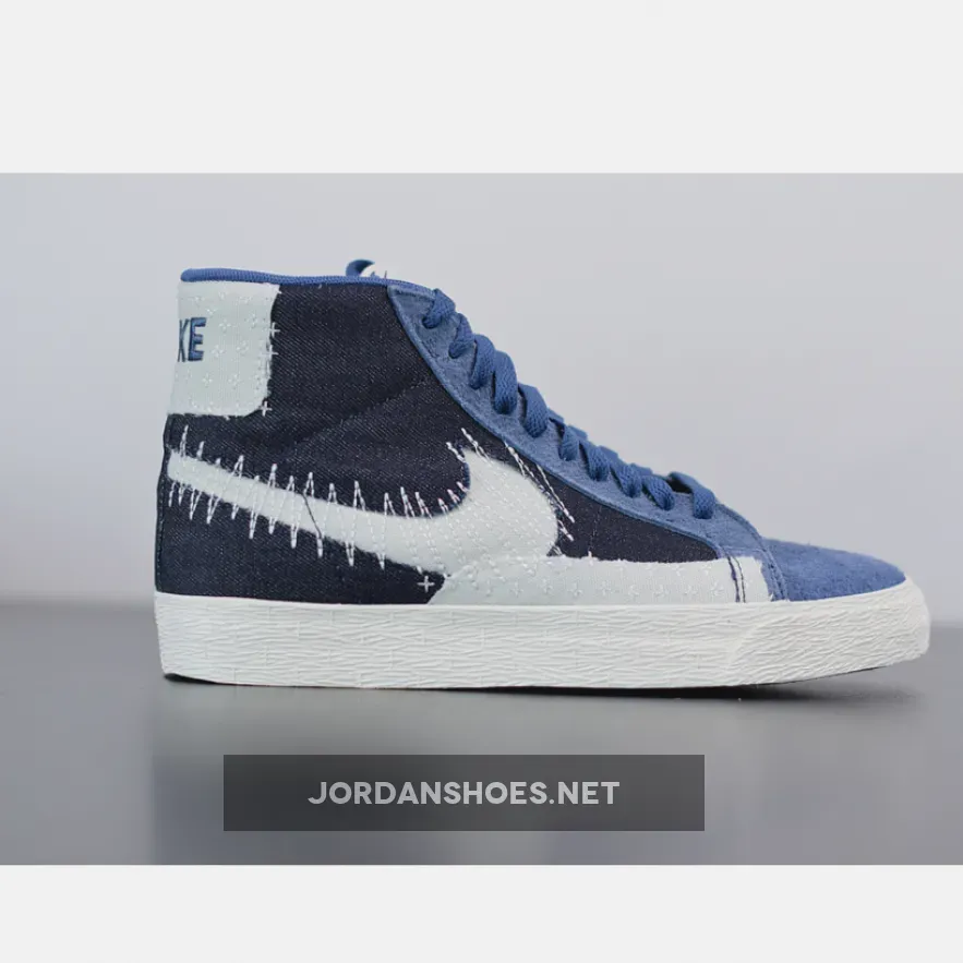 Sashiko, which literally translates to “little stabs,” is a form of decorative reinforcement stitching that originated in Japan around 400 years ago. This offering of the Nike SB Blazer Mid features a Navy base with Sail DIY-style paneling covered in Sashiko-style stitching. A Sail midsole atop a Gum rubber outsole completes the design.