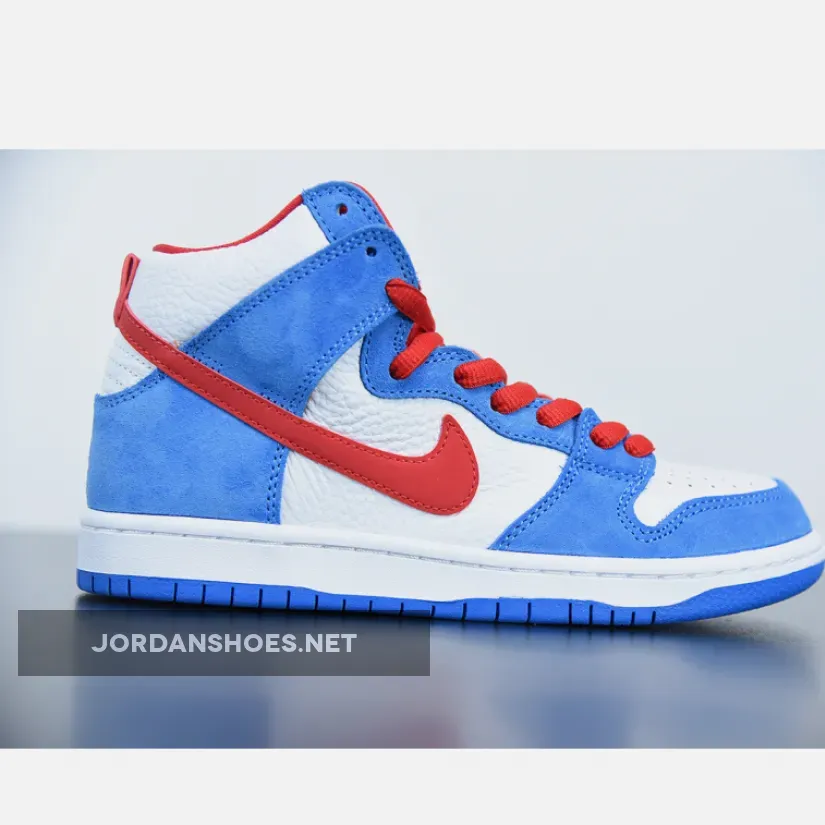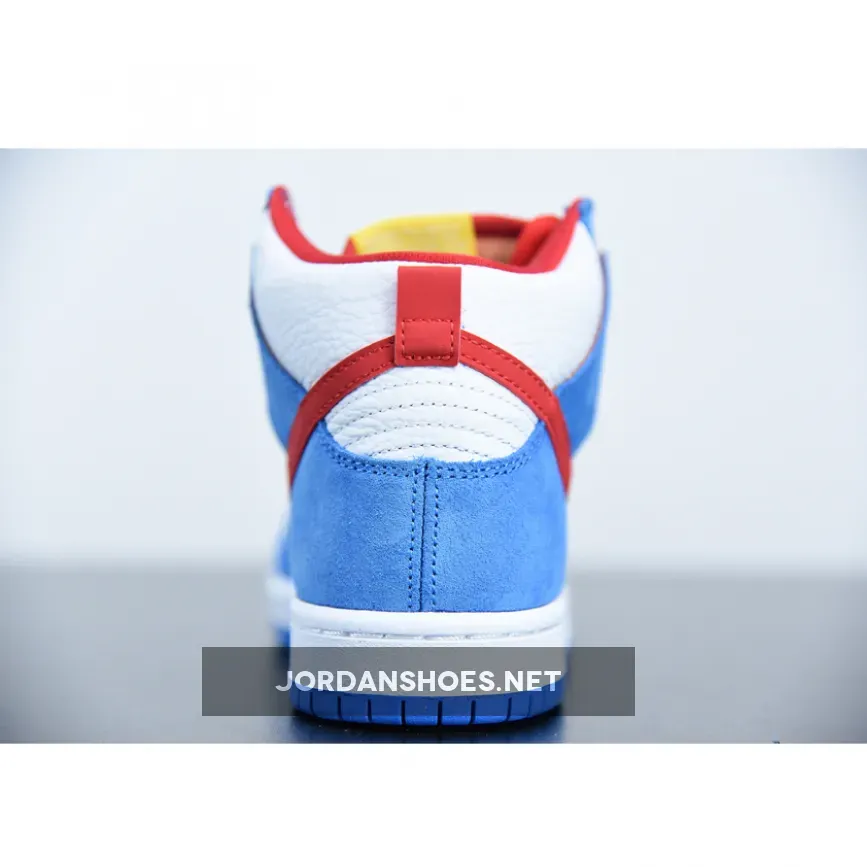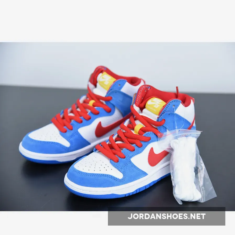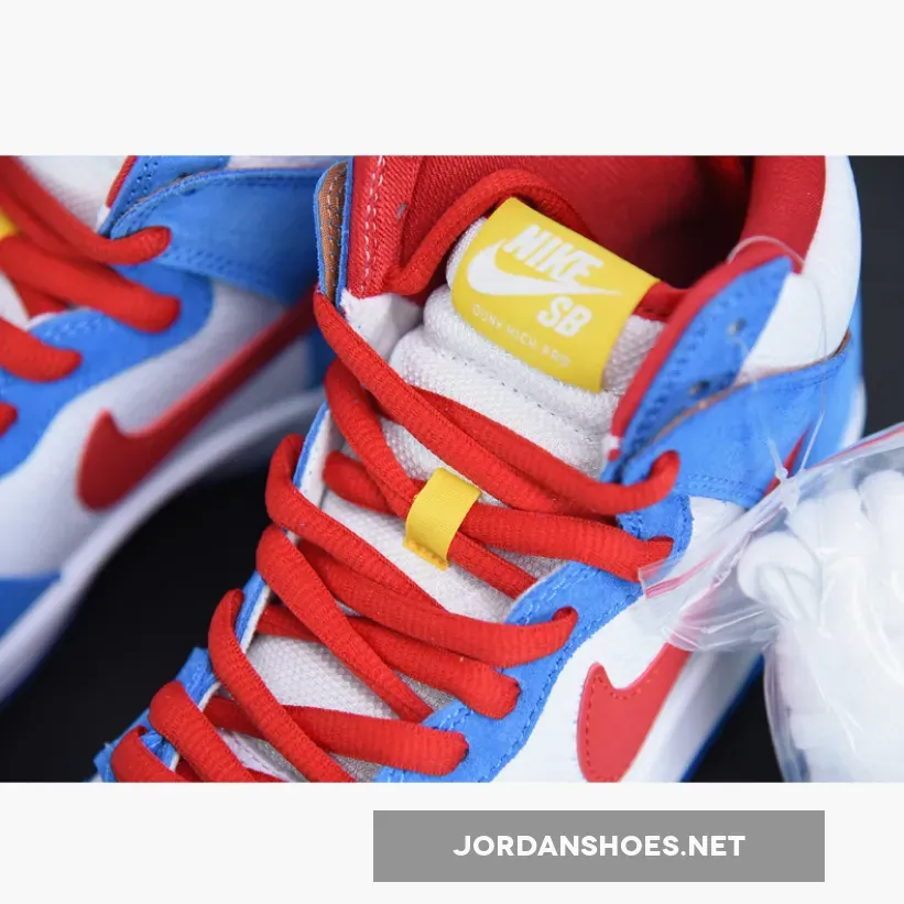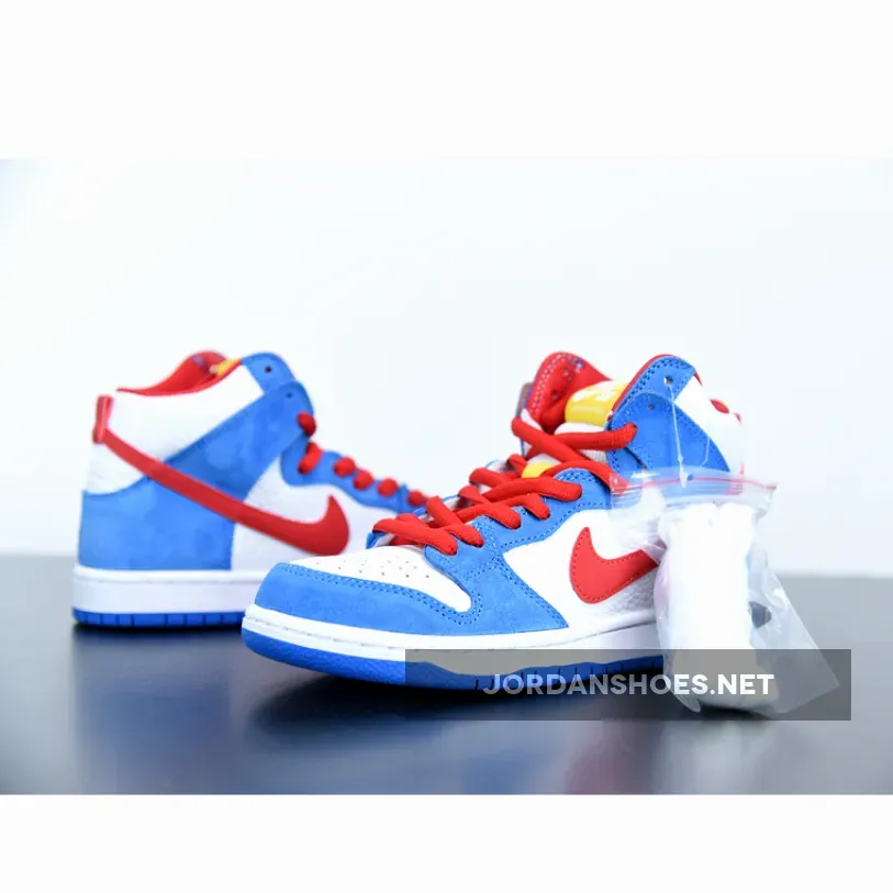 Dressed in a Light Photo Blue, Speed Yellow, and University Red color scheme. This offering of the SB Dunk High comes dressed in Doraemon’s color blocking. It features a White leather base with Blue suede overlays paired with a Red Swoosh and matching laces. Yellow tongues and and lace locks resembles his bell-adorned collar. A White midsole atop a Blue rubber outsole completes the design.