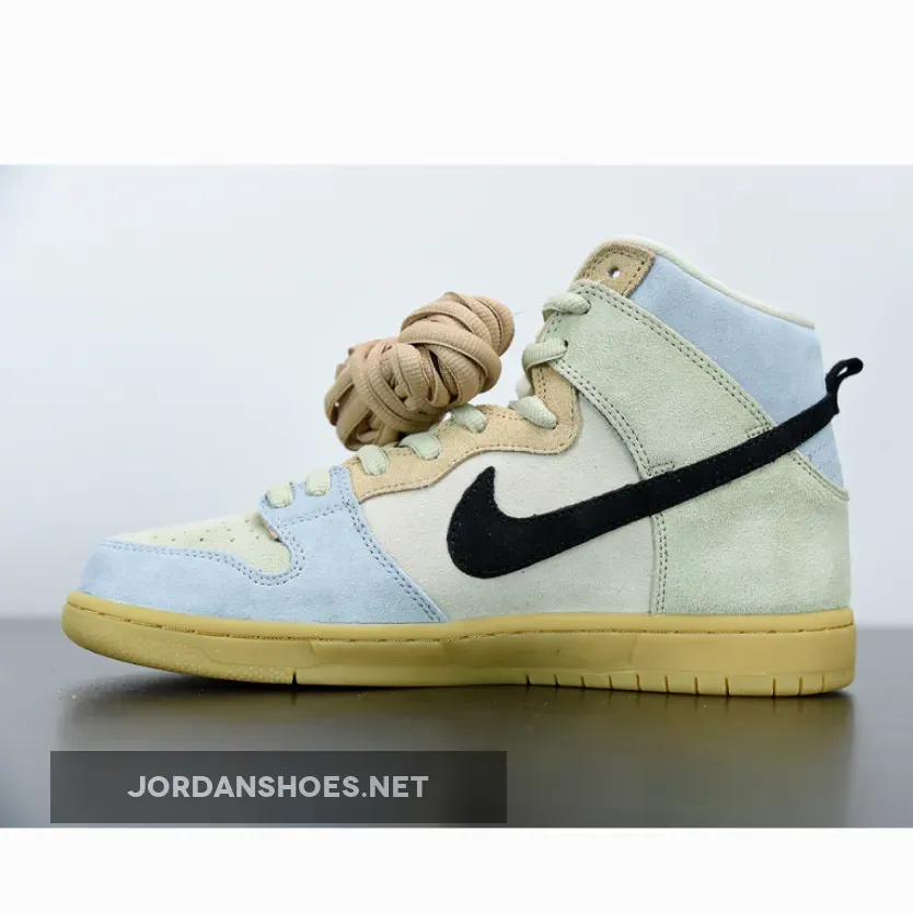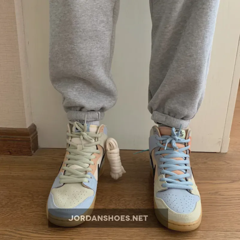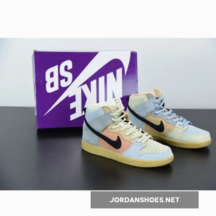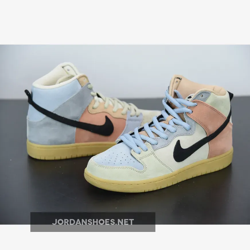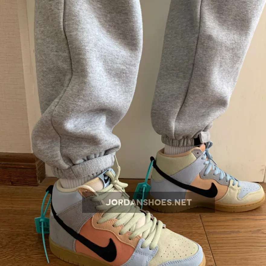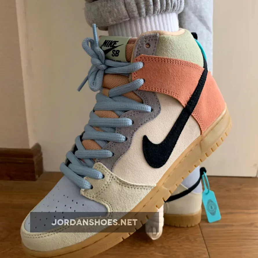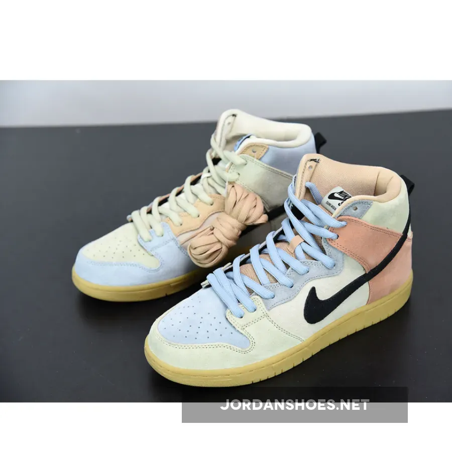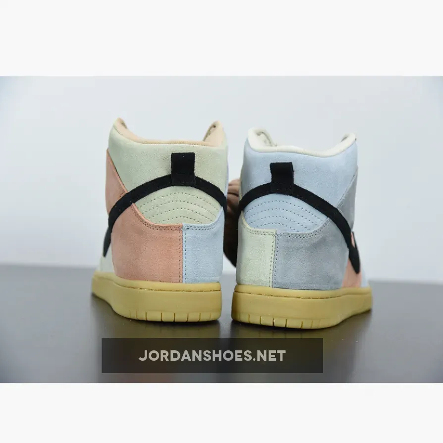 The Nike SB Dunk High “Spectrum” is reminiscent of vintage Dunk colorways from the shoe’s 2000s heyday. Released in Spring 2020 and sporting a playful color palette, the “Spectrum” features classic styling bits like a black suede Swooshes, suede Nike SB branding on the tongue, and a gum rubber outsole. Mismatching suede panels in hues of mint, light blue, light pink, and cream dot various areas of both the left and right shoe. The look is tied together with a contrasting nylon tongue and laces.