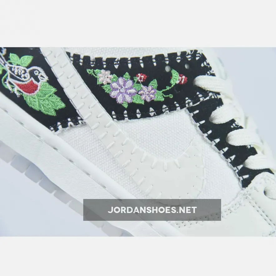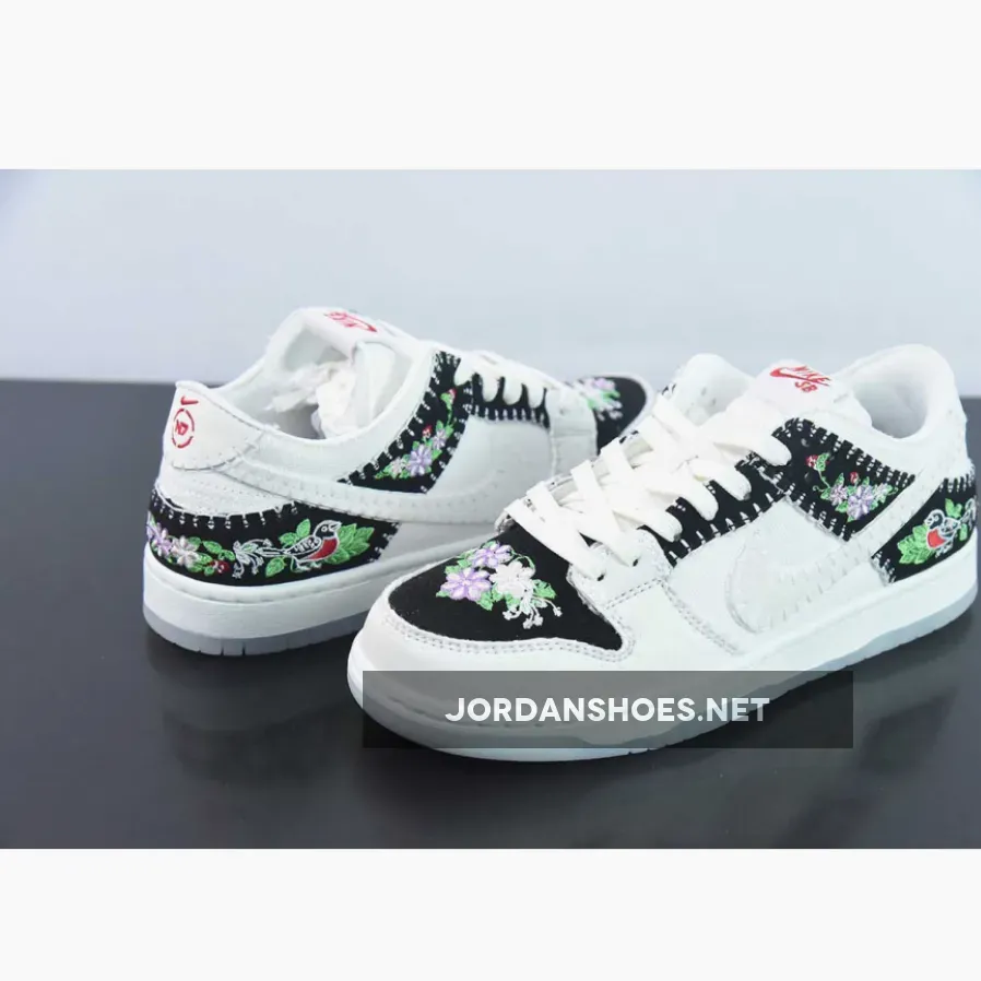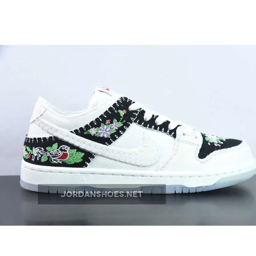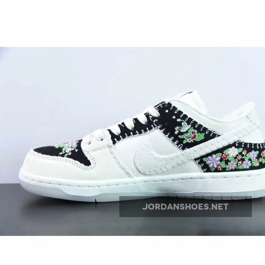 This offering of the Nike SB Dunk Low comes constructed in a mix of materials featuring a canvas base with leather overlays.Highlighting the shoe are floral embroidered prints on the Black overlays and insoles.