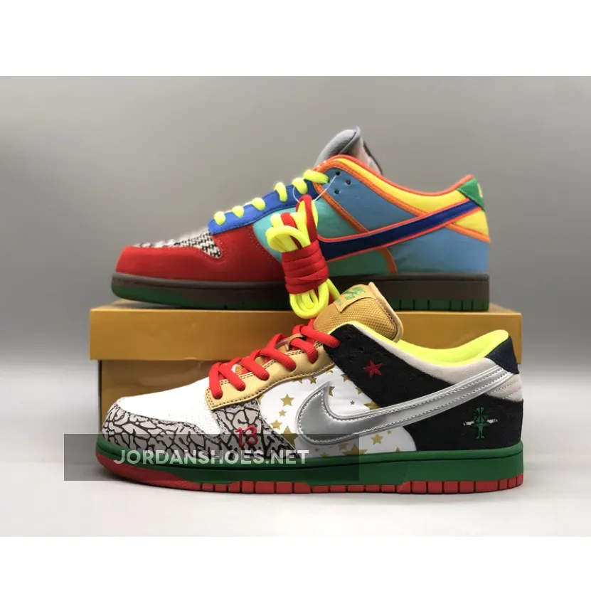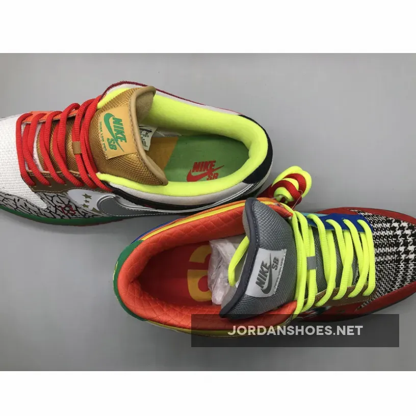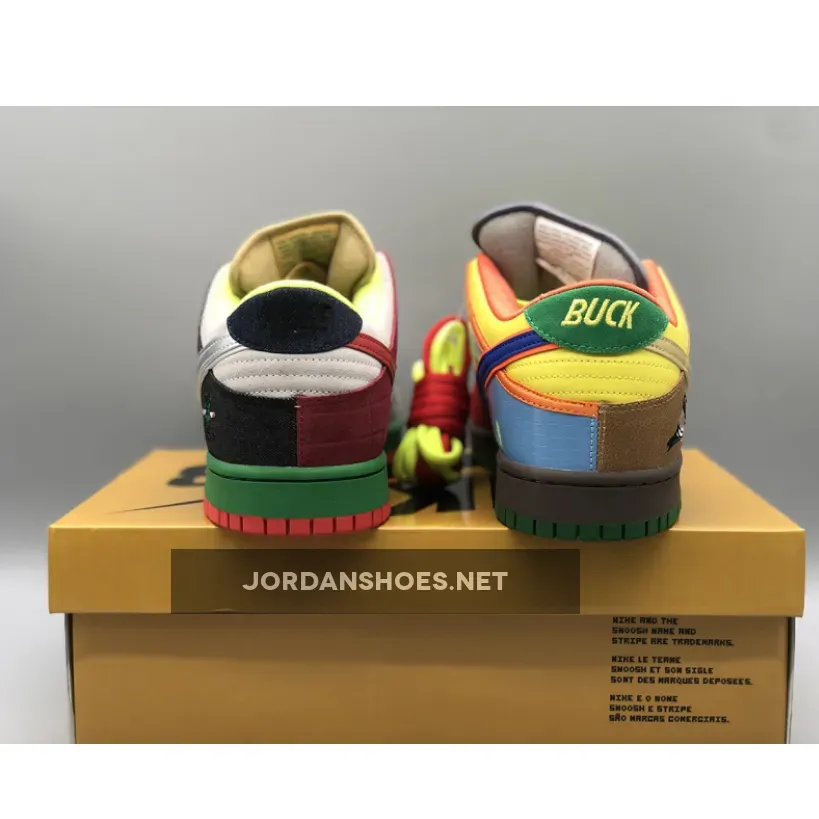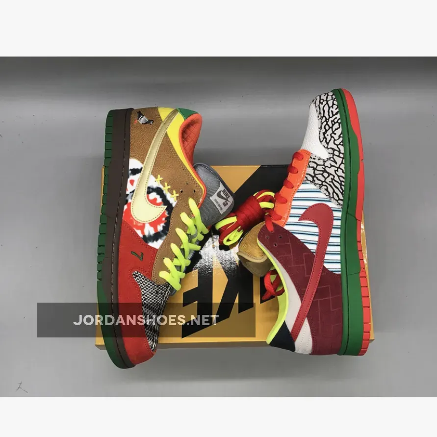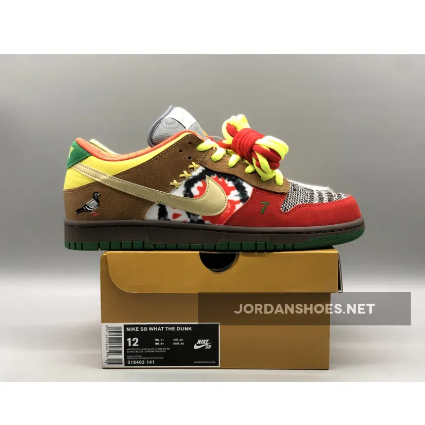 The Nike SB Dunk Low What the Dunk takes elements from past Nike SB Dunk releases, mashing them into one pair.