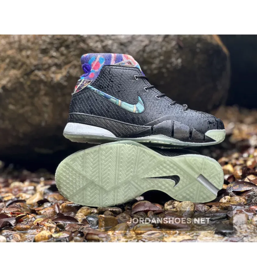 A black mamba inspired upper features a snakeskin look with art on the collar and Swoosh revealing the inside of a snake. A special badge is featured on the sockliner with “81,” paying homage to the Black Mamba’s highest point total in a single game.